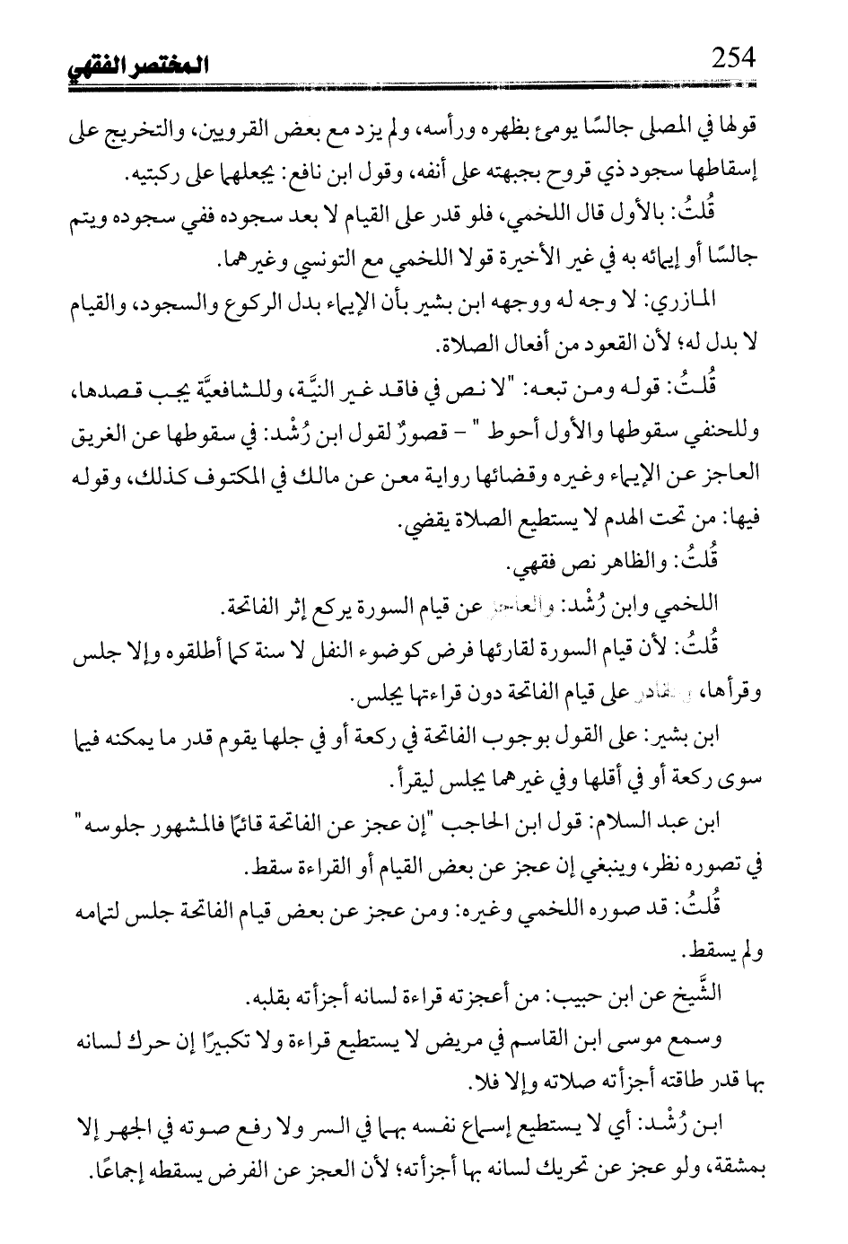 ابن عبد السلام: قول ابن الحاجب "إن عجز عن الفاتحة قائمًا فالمشهور جلوسه" في تصوره نظر، وينبغي إن عجز عن بعض القيام أو القراءة سقط.