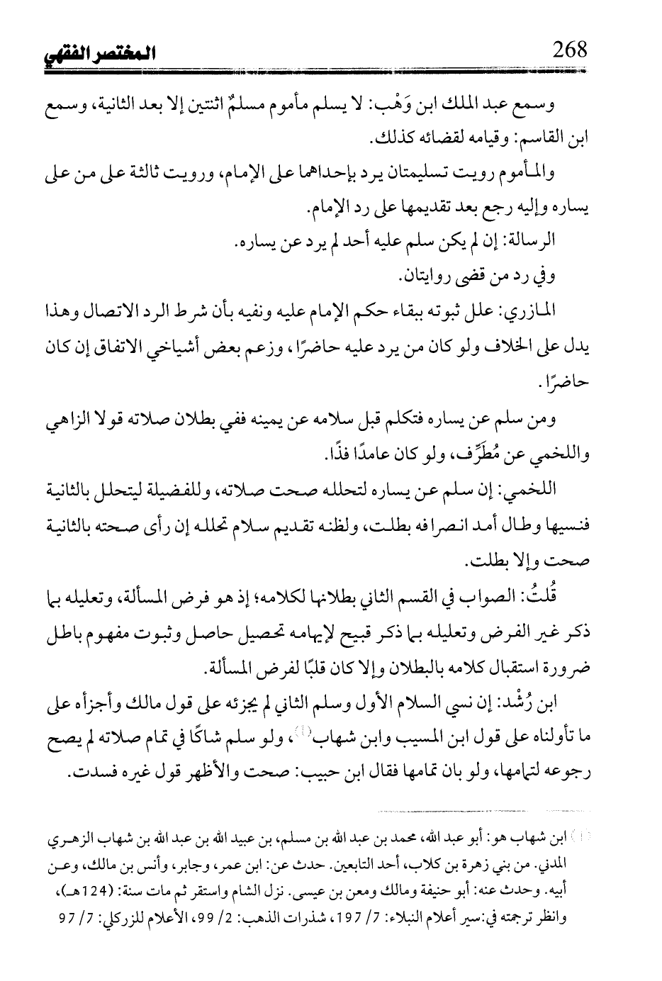 ابن رشد: إن نسي السلام الأول وسلم الثاني لم يجزئه على قول مالك وأجزأه على ما تأولنا على قول ابن المسيب وابن شهاب، ولو سلم شاكًا في تمام صلاته لم يصح رجوعه لتهامها، ولو بان تمامها فقال ابن حبيب: صحت والأظهر قول غيره فسدت.