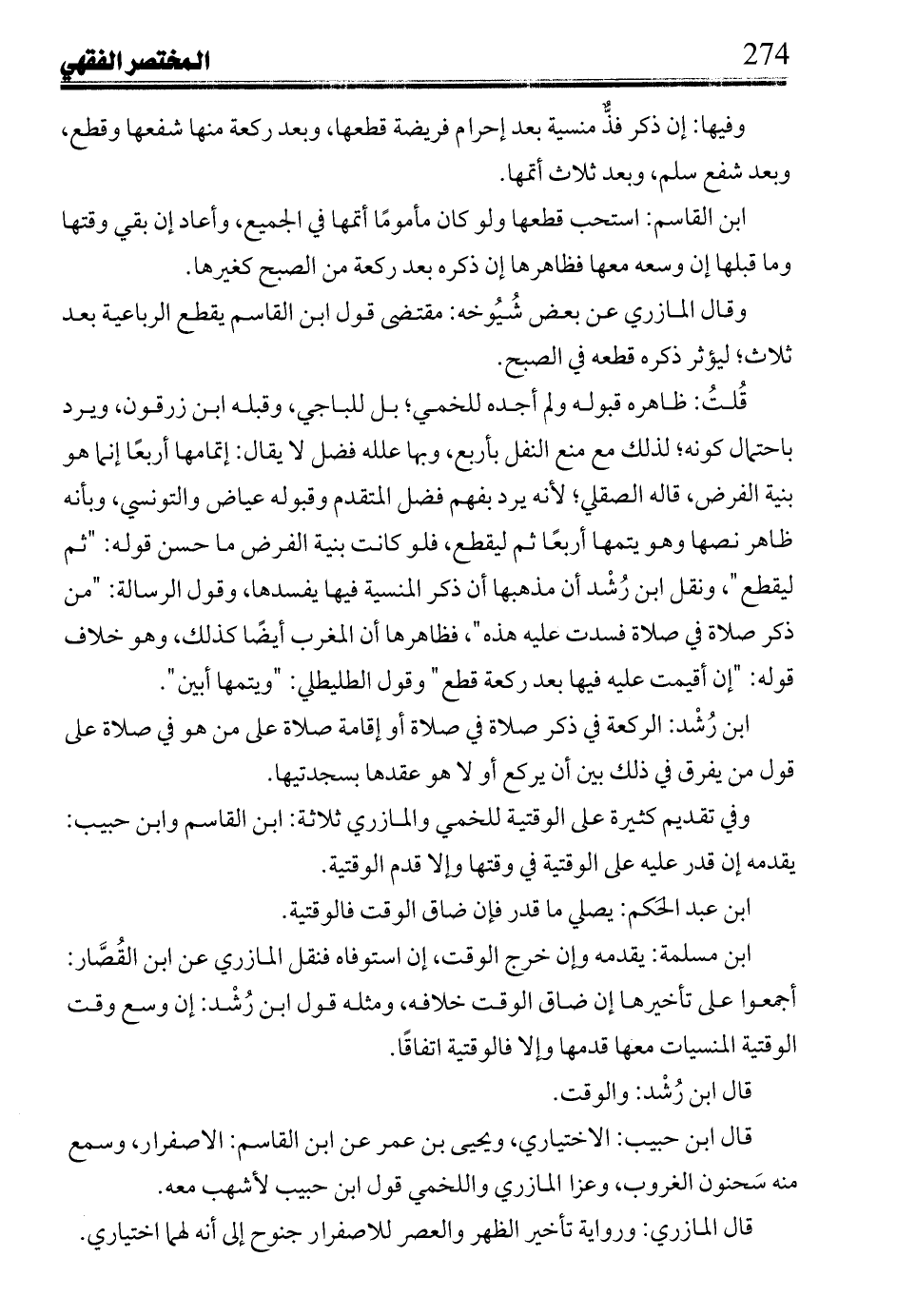 قال ابن رُشد: والوقت.
