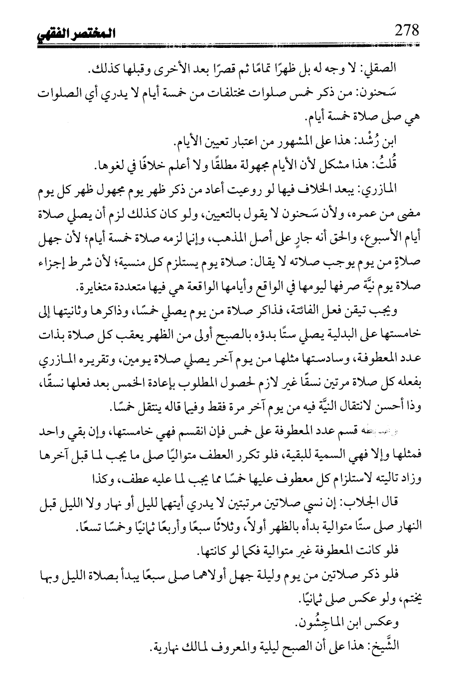 ابن رُشد: هذا على المشهور من اعتبار تعيين الأيام.