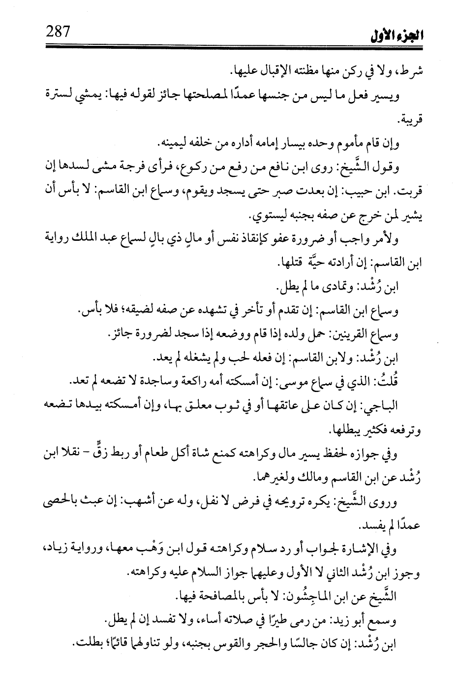 ابن رُشد: ولابن القاسم: إن فعله لحب ولم يشغله لم يعد.