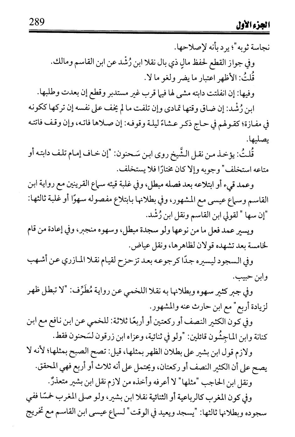 وفي جبر كثر سهوه وبطلانها به نقلا اللخمي عن رواية مُطرف: "لا تبطل ظهر لزيادة أربع" مع ابن حارث عنه والمشهور.