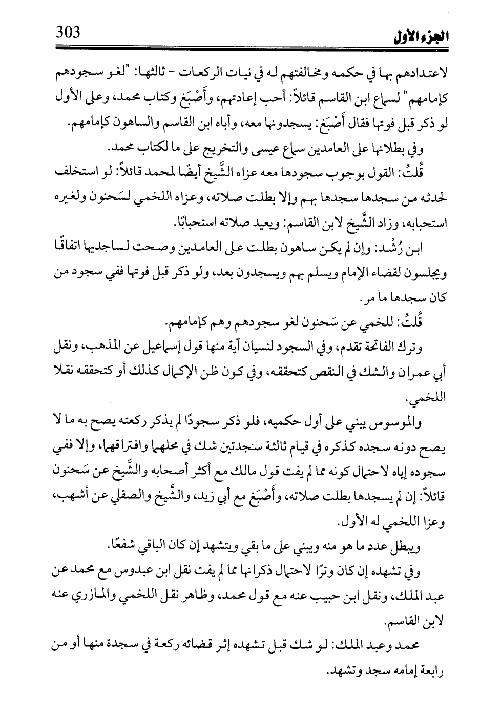 لاعتدادهم بها في حكمه ومخالفتهم له في نيات الركعات- ثالثها: "لغو سجودهم كإمامهم" لسماع ابن القاسم قائلاً: أحب إعادتهم، وأصبغ وكتاب محمد، وعلى الأول لو ذكر قبل فوتها فقال أصبغ: يسجدونها معه، وأباه ابن القاسم والساهون كإمامهم.