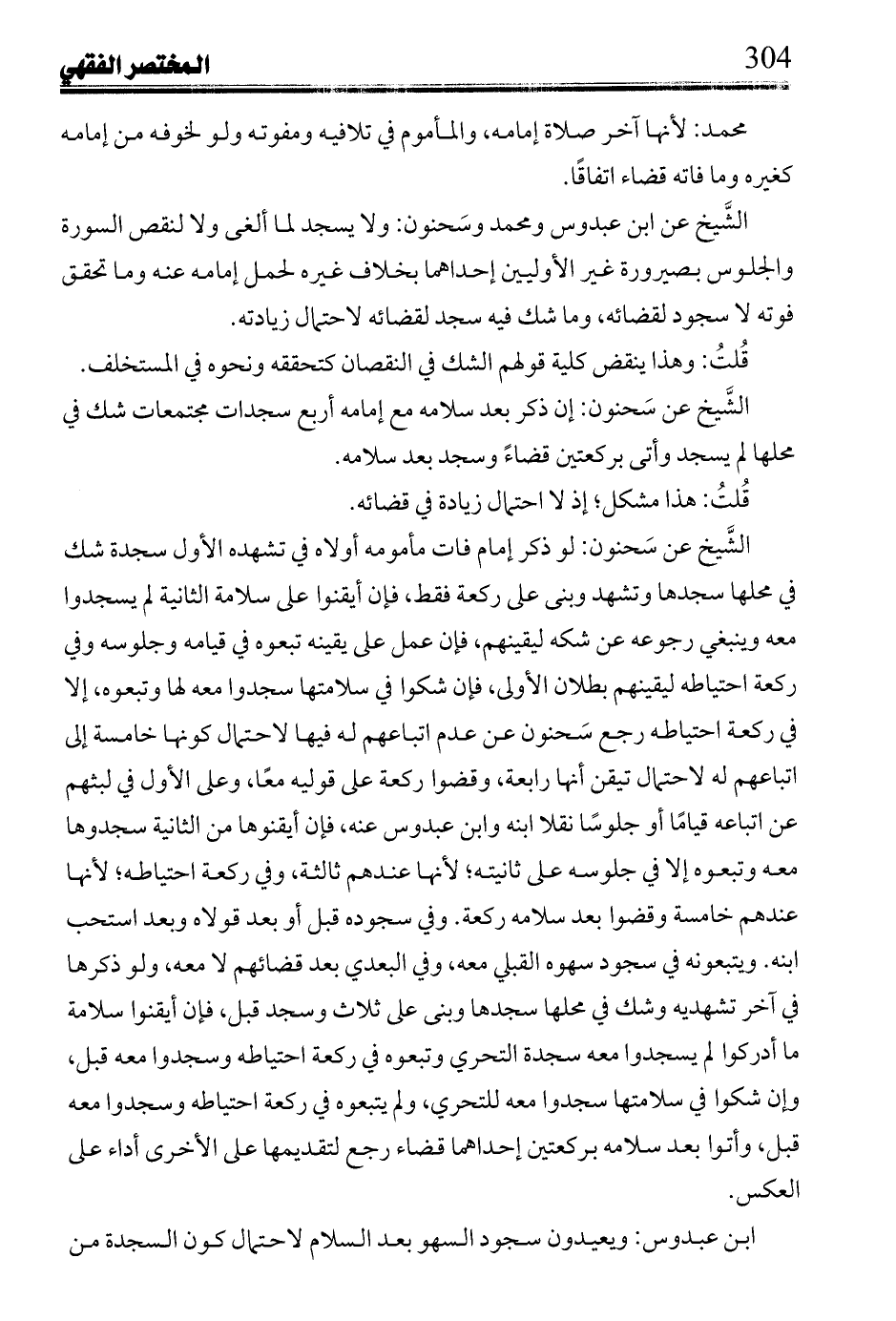 ابن عبدوس: ويعيدون سجود السهو بعد السلام لاحتمال كون السجدة من