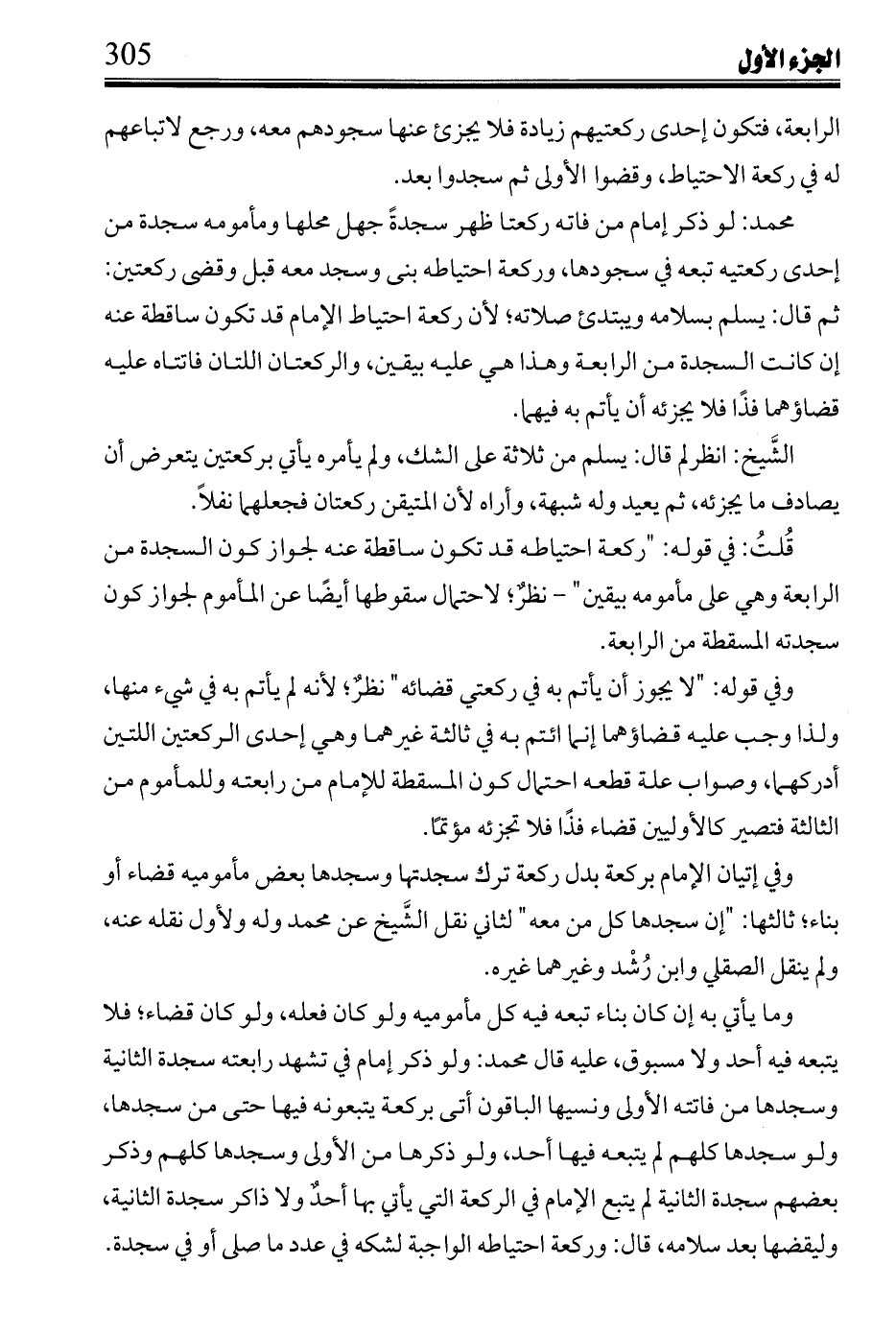 قلت: في قوله: "ركعة احتياطه قد تكون ساقطة عنه لجواز كون السجدة من الرابعة وهي على مأمومه بيقين" - نظر؛ لاحتمال سقوطها أيضًا عن المأموم لجواز كون سجدته المسقطة من الرابعة.