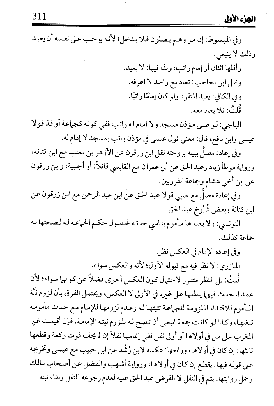 وفي إعادة مصل مع صبي قولا عبد الحق عن ابن عبد الرحمن مع ابن زرقون عن ابن كنانة وبعض شيوخ عبد الحق.