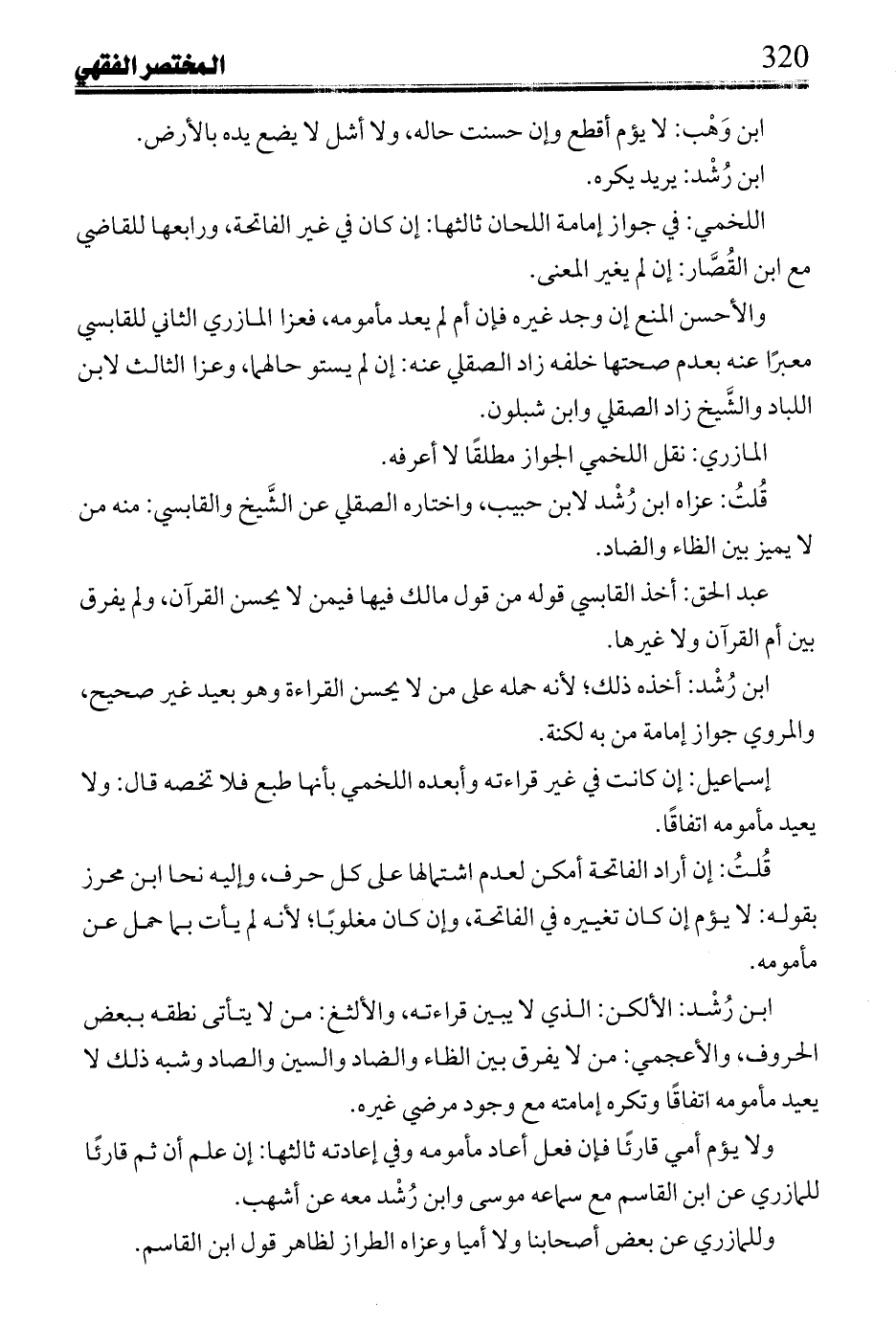 ابن رُشد: أخذه ذلك؛ لأنه حمله على من لا يحسن القراءة وهو بعيد غير صحيح، والمروي جواز إمامة من به لكنة.