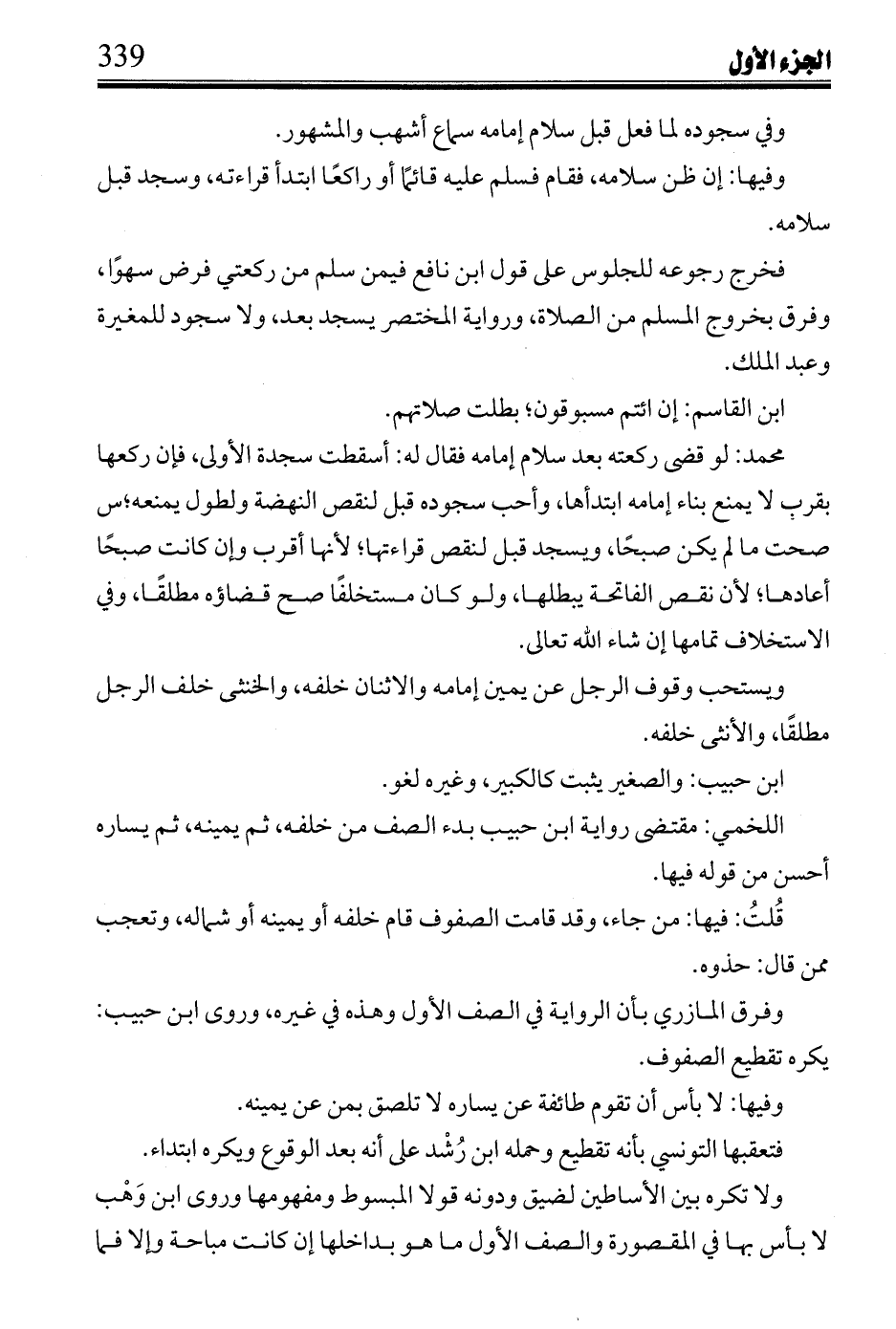 اللخمي: مقتضى رواية ابن حبيب بدء الصف من خلفه، ثم يمينه، ثم يساره أحسن من قوله فيها.
