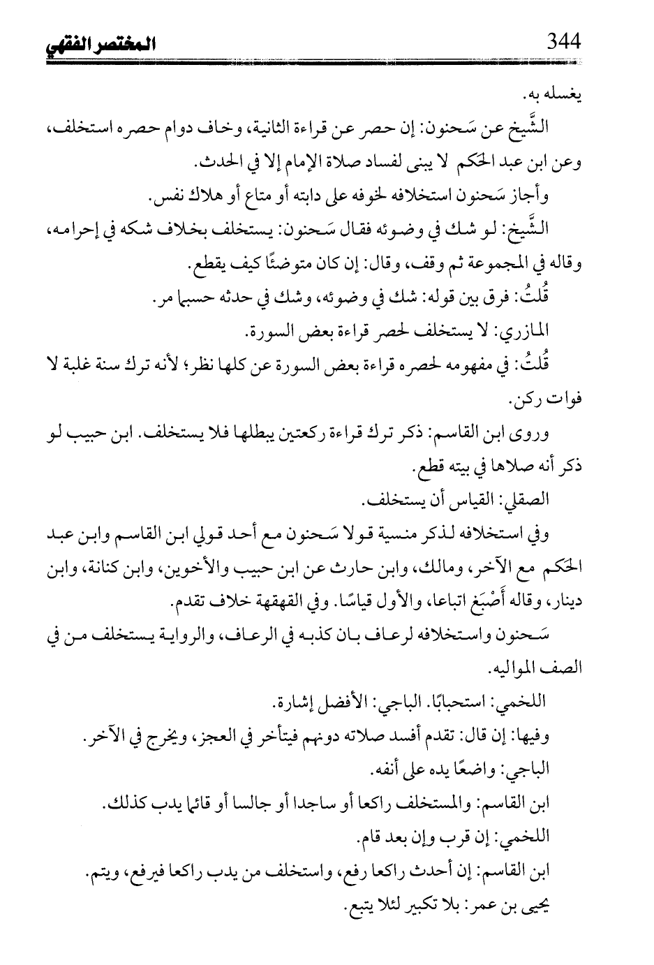 سحنون واستخلافه لرعاف بان كذبه في الرعاف، والرواية يستخلف من في الصف الموالية.