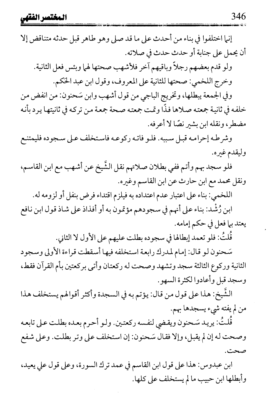ابن رُشد: بناء على أنهم في سجودهم مؤتمون به أو أفذاذ على شاذ قول ابن نافع يعتد بما فعل في حكم إمامه.