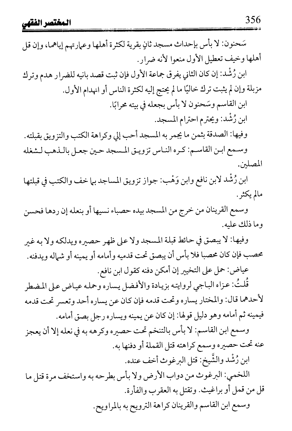 ابن رُشد لابن نافع وابن وهب: جواز تزويق المساجد بما خف والكتب في قبلتها ما لم يكثر.