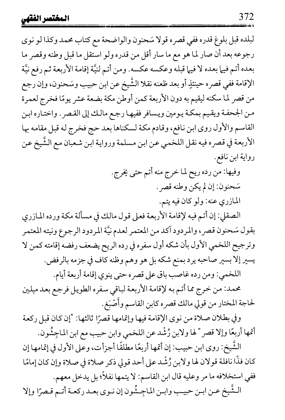سحنون: إن لم يكن وطنه قصر.