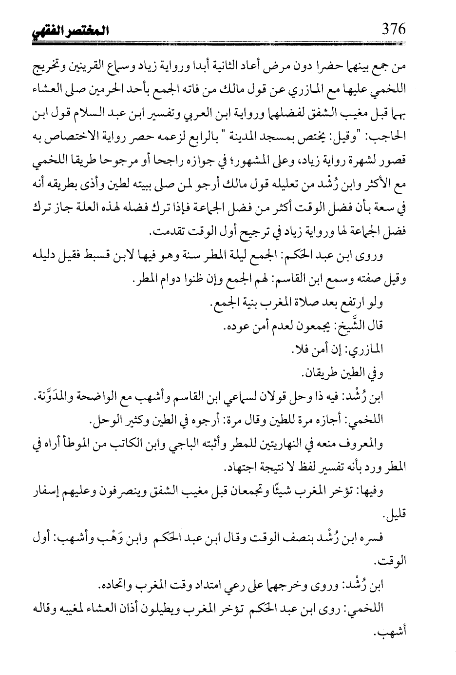 ابن رشد: وروى وخرجهما على رعي امتداد وقت المغرب واتحاده.