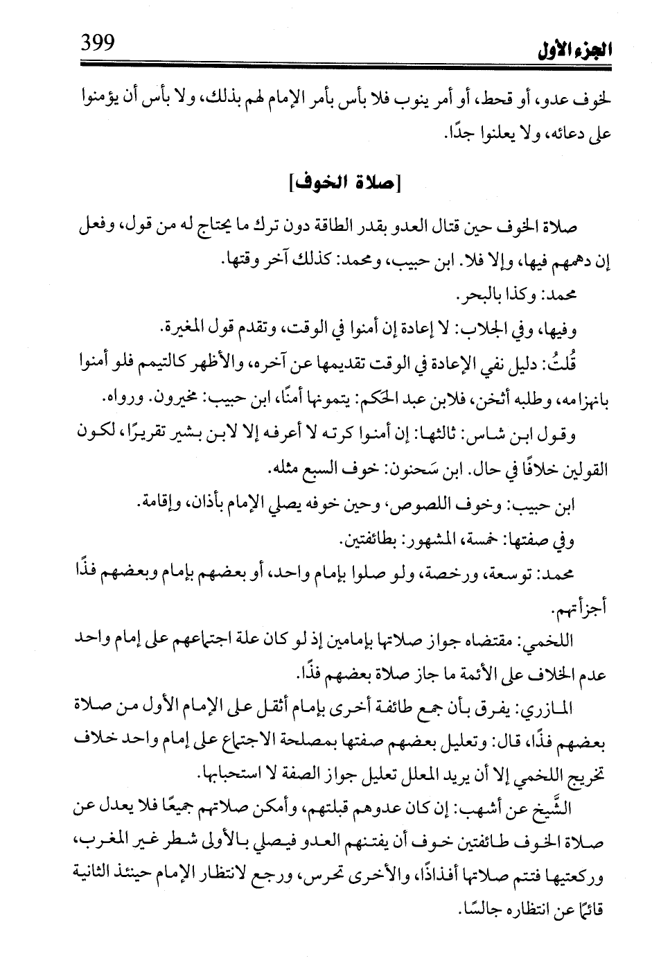 ابن حبيب: وخوف اللصوص, وحين خوفه يصلي الإمام بأذان, وإقامة.