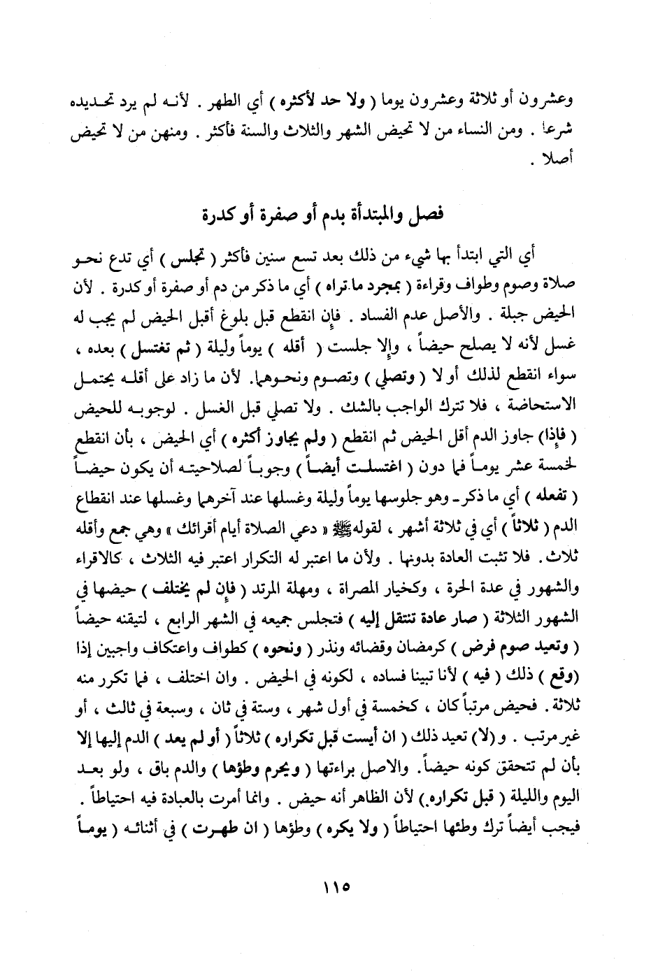 وَعِشْرُونَ أَوْ ثَلَاثَةٌ وَعِشْرُونَ يَوْمًا (وَلَا حَدَّ لِأَكْثَرِهِ) أَيْ الطُّهْرِ لِأَنَّهُ لَمْ يَرِدْ تَحْدِيدُهُ شَرْعًا. وَمِنْ النِّسَاءِ مَنْ لَا تَحِيضُ الشَّهْرَ وَالثَّلَاثَ وَالسَّنَةَ فَأَكْثَرَ، وَمِنْهُنَّ مَنْ لَا تَحِيضُ أَصْلًا.