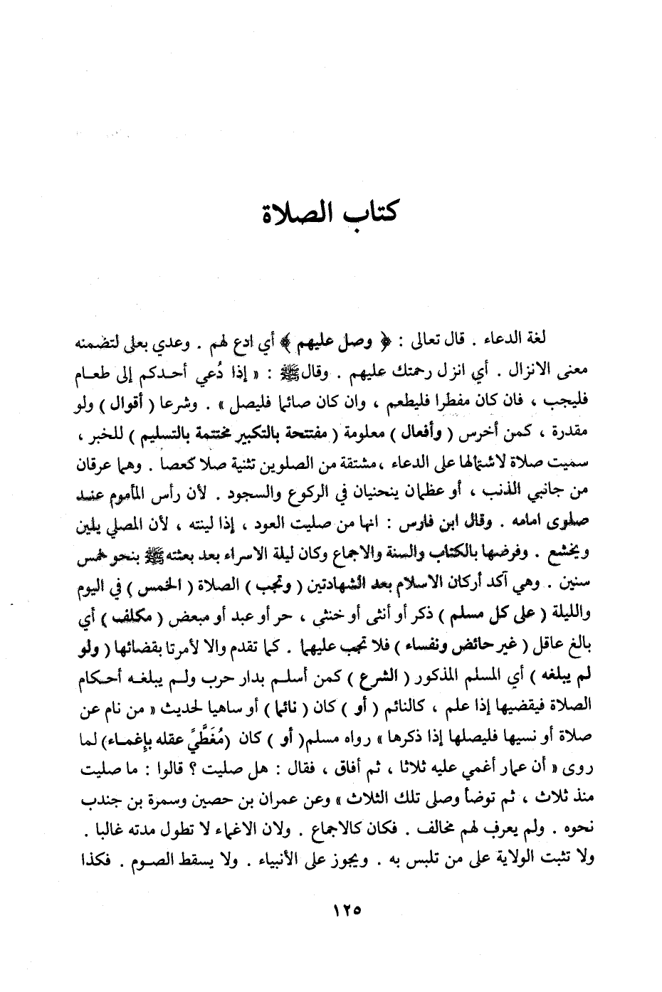كِتَابُ الصَّلَاةِ لُغَةً الدُّعَاءُ، قَالَ تَعَالَى: {وَصَلِّ عَلَيْهِمْ} [التوبة: ١٠٣] أَيْ اُدْعُ لَهُمْ، وَعُدِّيَ بِعَلَى لِتَضَمُّنِهِ مَعْنَى الْإِنْزَالِ، أَيْ أَنْزِلْ رَحْمَتَك عَلَيْهِمْ. وَقَالَ صَلَّى اللَّهُ عَلَيْهِ وَسَلَّمَ: «إذَا دُعِيَ أَحَدُكُمْ إلَى طَعَامٍ فَلْيُجِبْ، فَإِنْ كَانَ مُفْطِرًا فَلْيَطْعَمْ، وَإِنْ كَانَ صَائِمًا فَلْيَصِلْ» . وَشَرْعًا (أَقْوَالٌ) وَلَوْ مُقَدَّرَةً، كَمَنْ أُخْرِسَ (وَأَفْعَالٌ) مَعْلُومَةٌ (مُفْتَتَحَةٌ بِالتَّكْبِيرِ مُخْتَتَمَةٌ بِالتَّسْلِيمِ) لِلْخَبَرِ، سُمِّيَتْ صَلَاةً لِاشْتِمَالِهَا عَلَى الدُّعَاءِ، مُشْتَقَّةٌ مِنْ الصَّلَوَيْنِ تَثْنِيَةُ صَلَا كَعَصَا. وَهُمَا عِرْقَانِ مِنْ جَانِبَيْ الذَّنَبِ، أَوْ عَظْمَانِ يَنْحَنِيَانِ فِي الرُّكُوعِ وَالسُّجُودِ ; لِأَنَّ رَأْسَ الْمَأْمُومِ عِنْدَ صَلَوَى إمَامِهِ. وَقَالَ ابْنُ فَارِسٍ: إنَّهَا مِنْ صَلَيْت الْعُودَ، إذَا لَيَّنْته، لِأَنَّ الْمُصَلِّيَ يَلِينُ وَيَخْشَعُ.