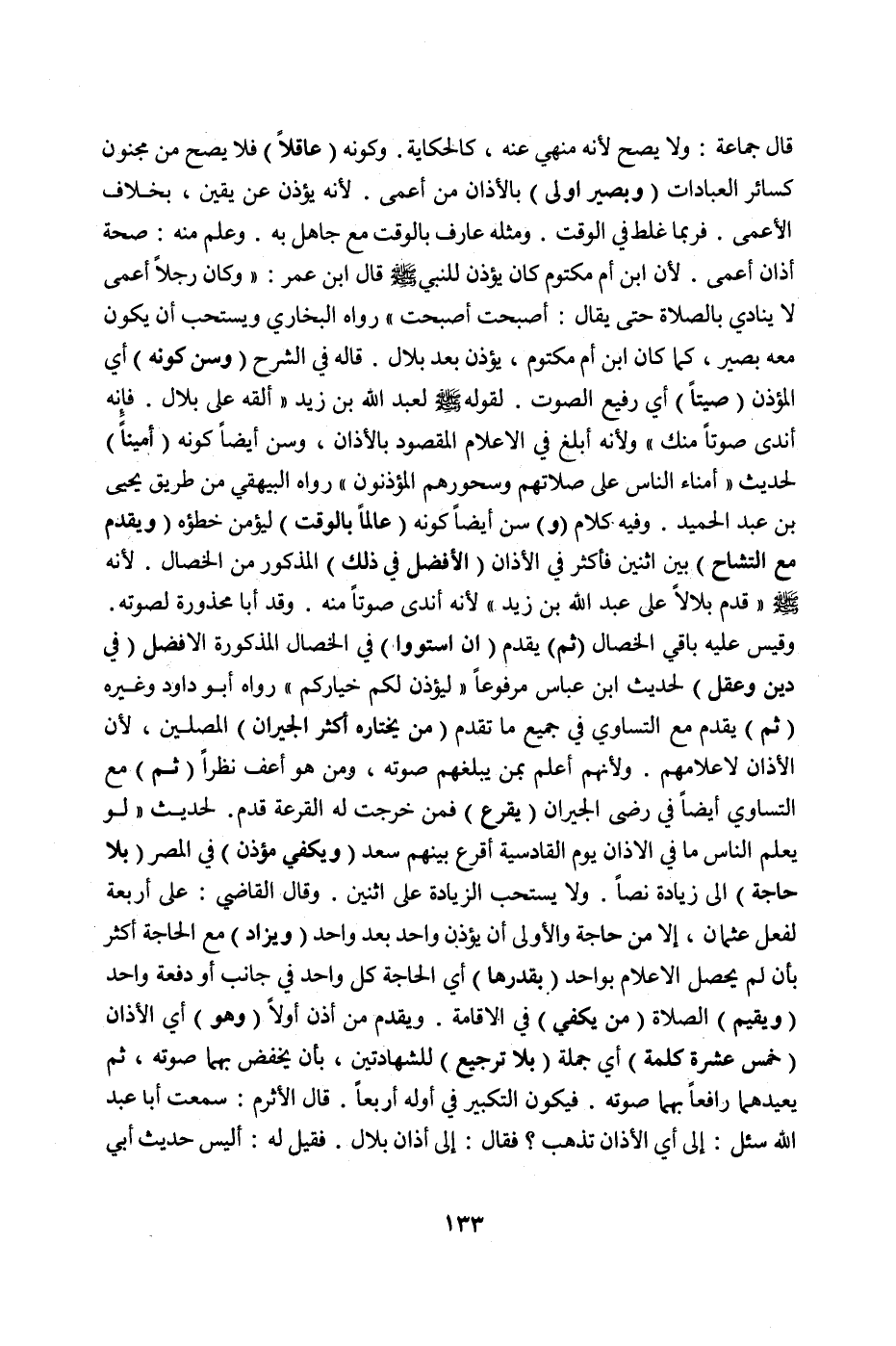 قَالَ جَمَاعَةٌ: وَلَا يَصِحُّ لِأَنَّهُ مَنْهِيٌّ عَنْهُ، كَالْحِكَايَةِ. وَكَوْنُهُ (عَاقِلًا) فَلَا يَصِحُّ مِنْ مَجْنُونٍ كَسَائِرِ الْعِبَادَاتِ (وَبَصِيرًا أَوْلَى) بِالْأَذَانِ مِنْ أَعْمَى. لِأَنَّهُ يُؤَذِّنُ عَنْ يَقِينٍ، بِخِلَافِ الْأَعْمَى. فَرُبَّمَا غَلِطَ فِي الْوَقْتِ.