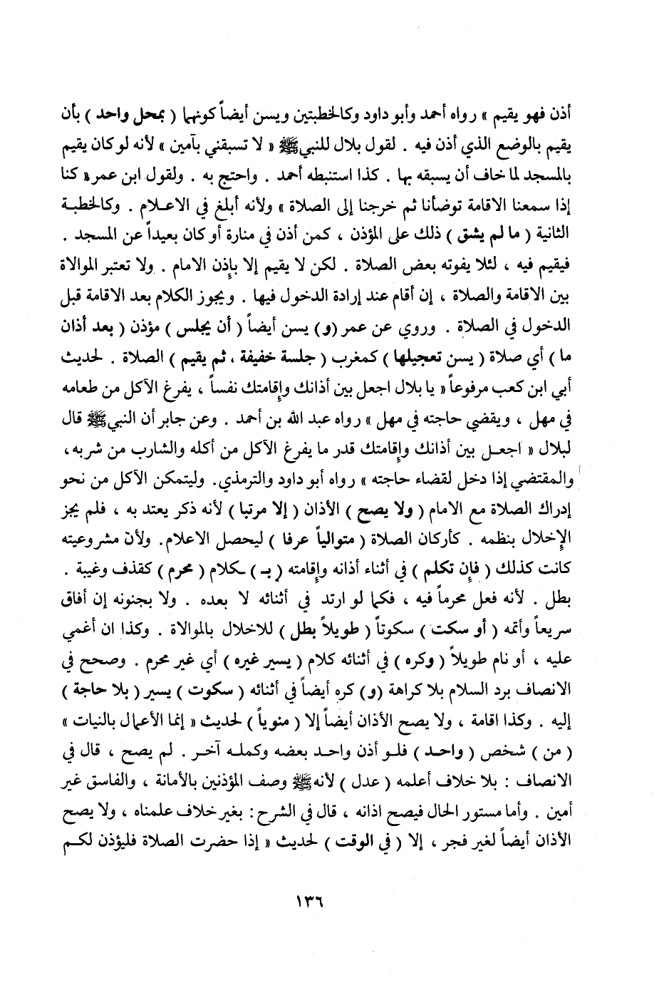 (وَلَا يَصِحُّ) الْأَذَانُ (إلَّا مُرَتَّبًا) لِأَنَّهُ ذِكْرٌ يُعْتَدُّ بِهِ، فَلَمْ يَجُزْ الْإِخْلَالُ بِنَظْمِهِ. كَأَرْكَانِ الصَّلَاةِ (مُتَوَالِيًا عُرْفًا) لِيَحْصُلَ الْإِعْلَامُ. وَلِأَنَّ مَشْرُوعِيَّتَهُ كَانَتْ كَذَلِكَ (فَإِنْ تَكَلَّمَ) فِي أَثْنَاءِ أَذَانِهِ وَإِقَامَتِهِ (ب) كَلَامٍ (مُحَرَّمٍ) كَقَذْفٍ وَغِيبَةٍ. بَطَلَ ; لِأَنَّهُ فَعَلَ مُحَرَّمًا فِيهِ، فَكَمَا لَوْ ارْتَدَّ فِي أَثْنَائِهِ لَا بَعْدَهُ. وَلَا بِجُنُونِهِ إنْ أَفَاقَ سَرِيعًا وَأَتَمَّهُ (أَوْ سَكَتَ) سُكُوتًا (طَوِيلًا بَطَلَ) لِلْإِخْلَالِ بِالْمُوَالَاةِ.
