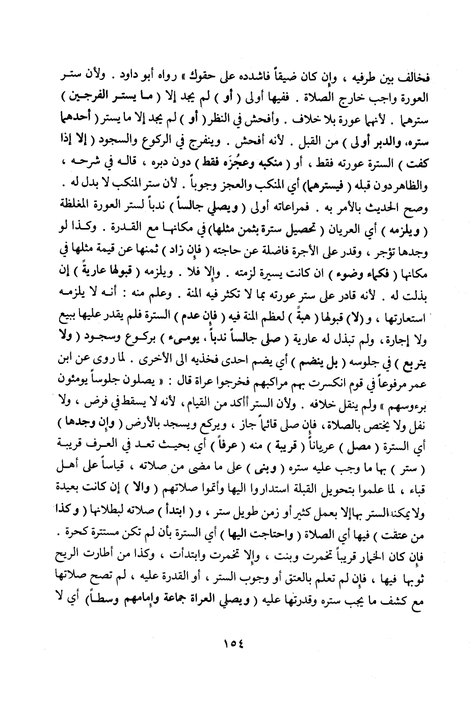«وَإِذَا كَانَ الثَّوْبُ وَاسِعًا فَخَالِفْ بَيْنَ طَرَفَيْهِ، وَإِنْ كَانَ ضَيِّقًا فَاشْدُدْهُ عَلَى حِقْوِكَ» رَوَاهُ أَبُو دَاوُد.
