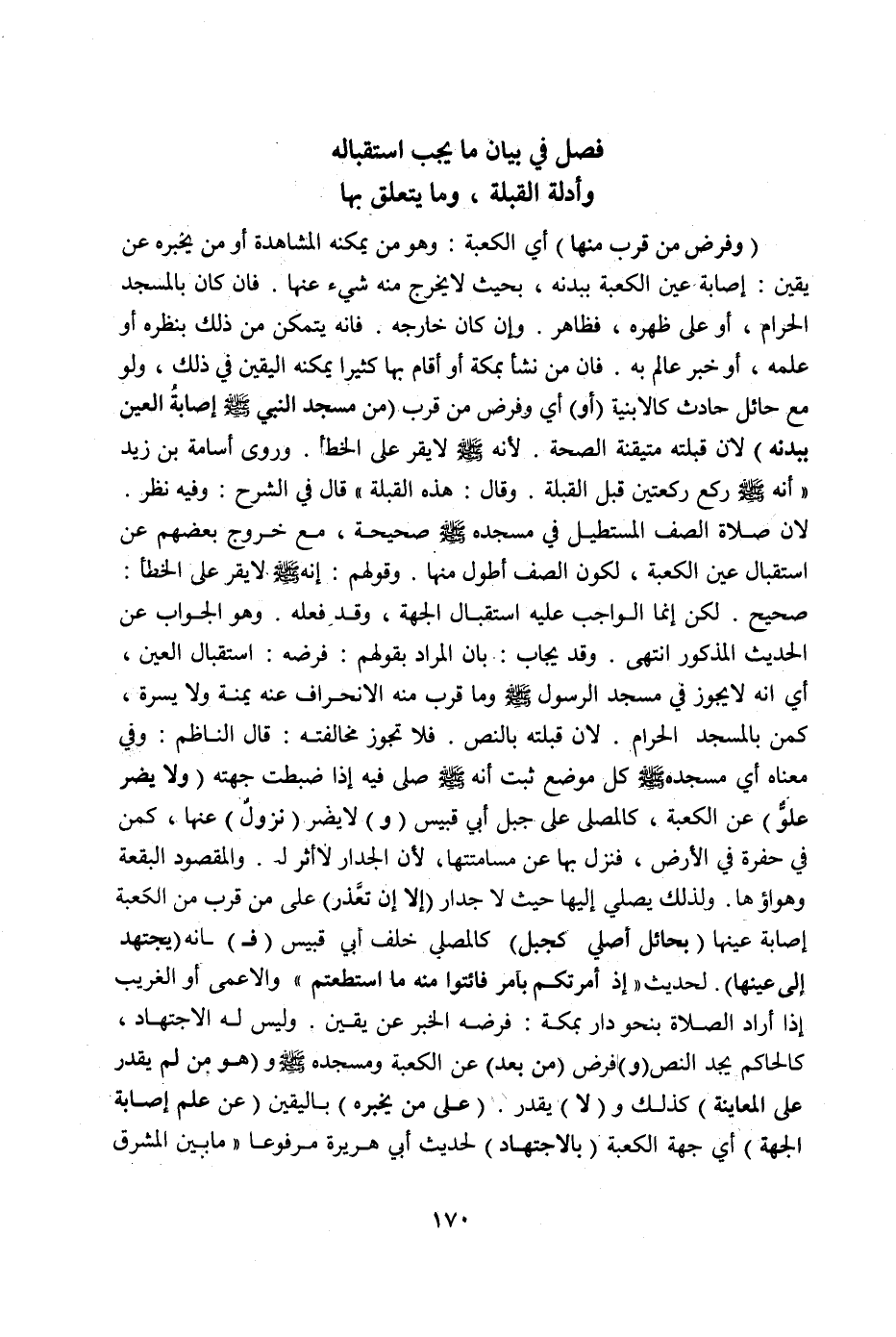 [فَصْلٌ فِي بَيَانِ مَا يَجِبُ اسْتِقْبَالُهُ وَأَدِلَّةُ الْقِبْلَةِ وَمَا يَتَعَلَّقُ بِهَا]