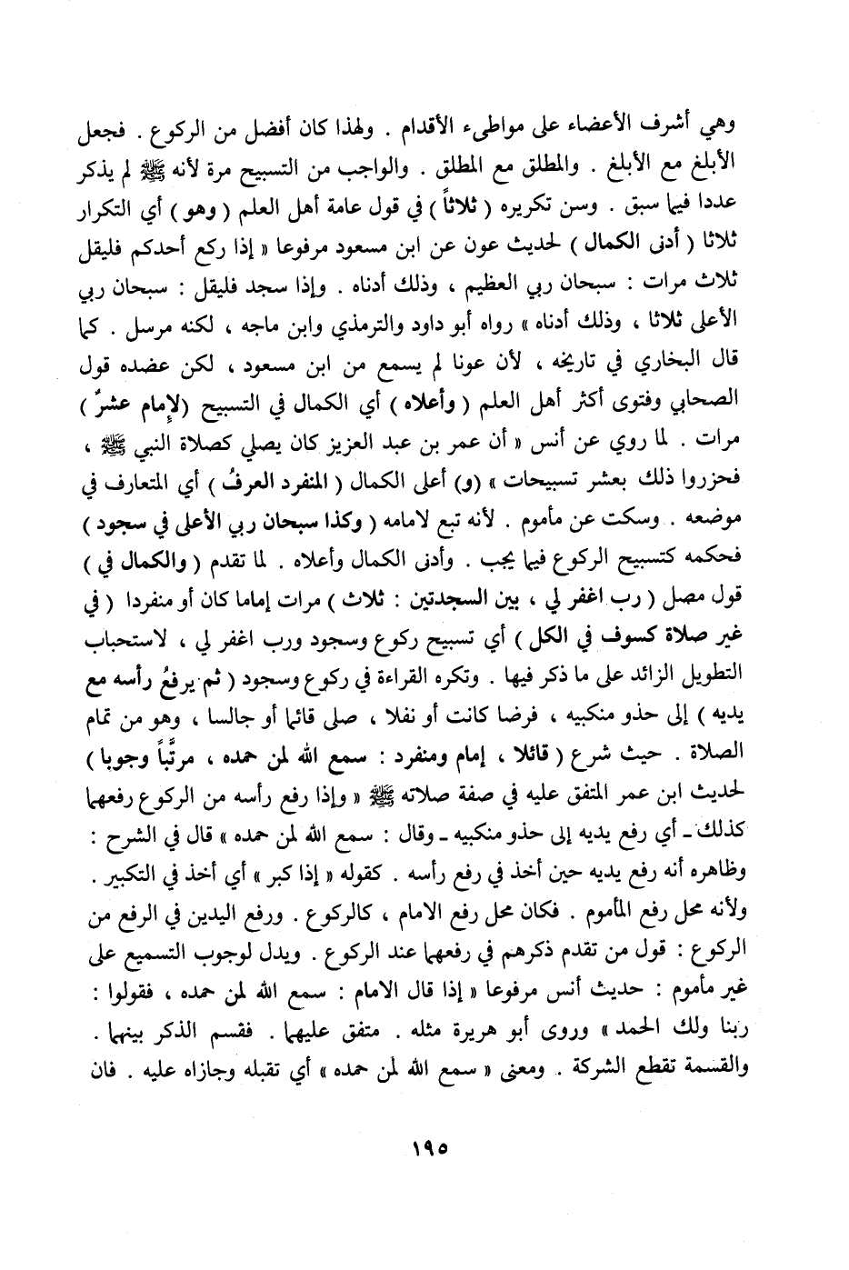 كَمَا قَالَ الْبُخَارِيُّ فِي تَارِيخِهِ، لِأَنَّ عَوْنًا لَمْ يَسْمَعْ مِنْ ابْنِ مَسْعُودٍ، لَكِنْ عَضَّدَهُ قَوْلُ الصَّحَابِيِّ وَفَتْوَى أَكْثَرِ أَهْلِ الْعِلْمِ (وَأَعْلَاهُ) أَيْ الْكَمَالِ فِي التَّسْبِيحِ (لِإِمَامٍ عَشْرُ) مَرَّاتٍ لِمَا رُوِيَ عَنْ أَنَسٍ " أَنَّ عُمَرَ بْنَ عَبْدِ الْعَزِيزِ كَانَ يُصَلِّي كَصَلَاةِ النَّبِيِّ صَلَّى اللَّهُ عَلَيْهِ وَسَلَّمَ فَحَزَرُوا ذَلِكَ بِعَشْرِ تَسْبِيحَاتٍ " (وَ) أَعْلَى الْكَمَالِ (الْمُنْفَرِدِ الْعُرْفُ) أَيْ الْمُتَعَارَفُ فِي مَوْضِعِهِ،