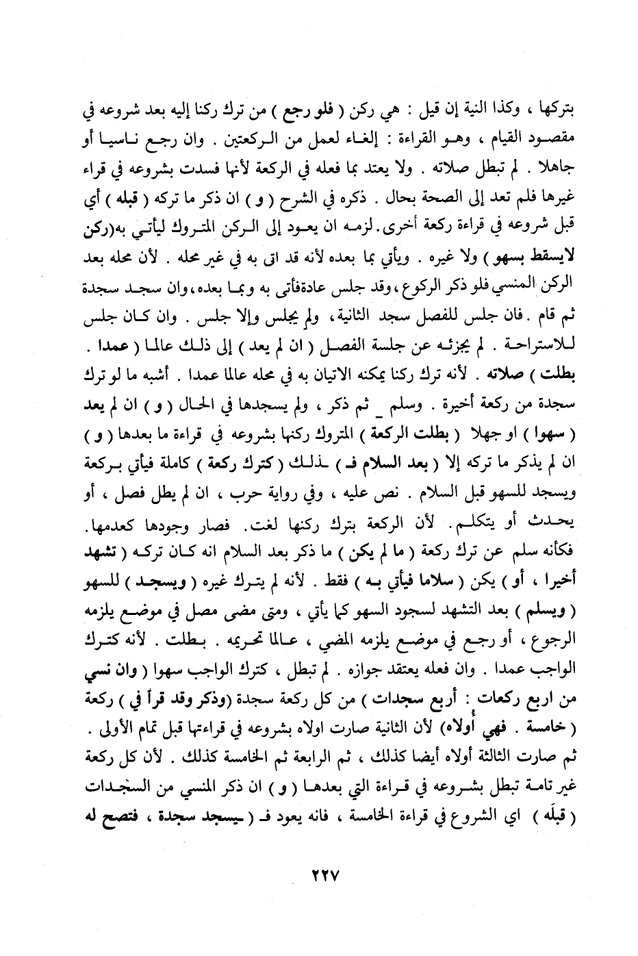 وَإِنْ رَجَعَ نَاسِيًا، أَوْ جَاهِلًا لَمْ تَبْطُلُ صَلَاتُهُ وَلَا يَعْتَدُّ بِمَا فَعَلَهُ فِي الرَّكْعَةِ لِأَنَّهَا فَسَدَتْ بِشُرُوعِهِ فِي قِرَاءَةِ غَيْرِهَا فَلَمْ تَعُدْ إلَى الصِّحَّةِ بِحَالٍ ذَكَرَهُ فِي الشَّرْحِ.
