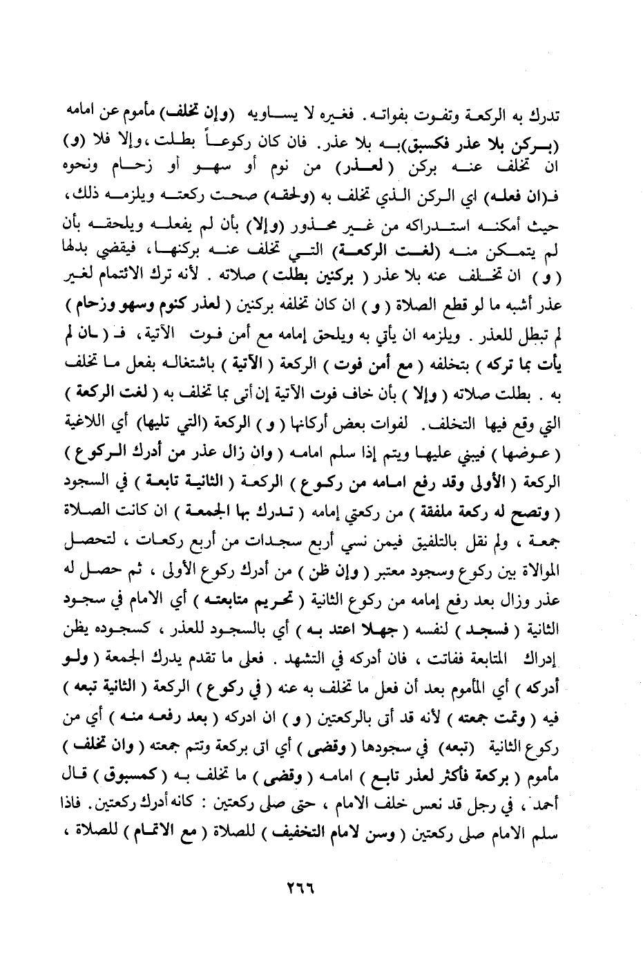 (وَ) إنْ أَدْرَكَهُ (بَعْدَ رَفْعِهِ مِنْهُ) أَيْ: مِنْ رُكُوعِ الثَّانِيَةِ (تَبِعَهُ) فِي سُجُودِهَا (وَقَضَى) أَيْ: أَتَى بِرَكْعَةٍ وَتَتِمُّ جُمُعَتُهُ (وَإِنْ تَخَلَّفَ) مَأْمُومٌ (بِرَكْعَةٍ فَأَكْثَرَ لِعُذْرٍ تَابَعَ) إمَامَهُ (وَقَضَى) مَا تَخَلَّفَ بِهِ (كَمَسْبُوقٍ) قَالَ أَحْمَدُ، فِي رَجُلٍ قَدْ نَعَسَ خَلْفَ الْإِمَامِ، حَتَّى صَلَّى رَكْعَتَيْنِ: كَأَنَّهُ أَدْرَكَ رَكْعَتَيْنِ فَإِذَا سَلَّمَ الْإِمَامُ صَلَّى رَكْعَتَيْنِ.