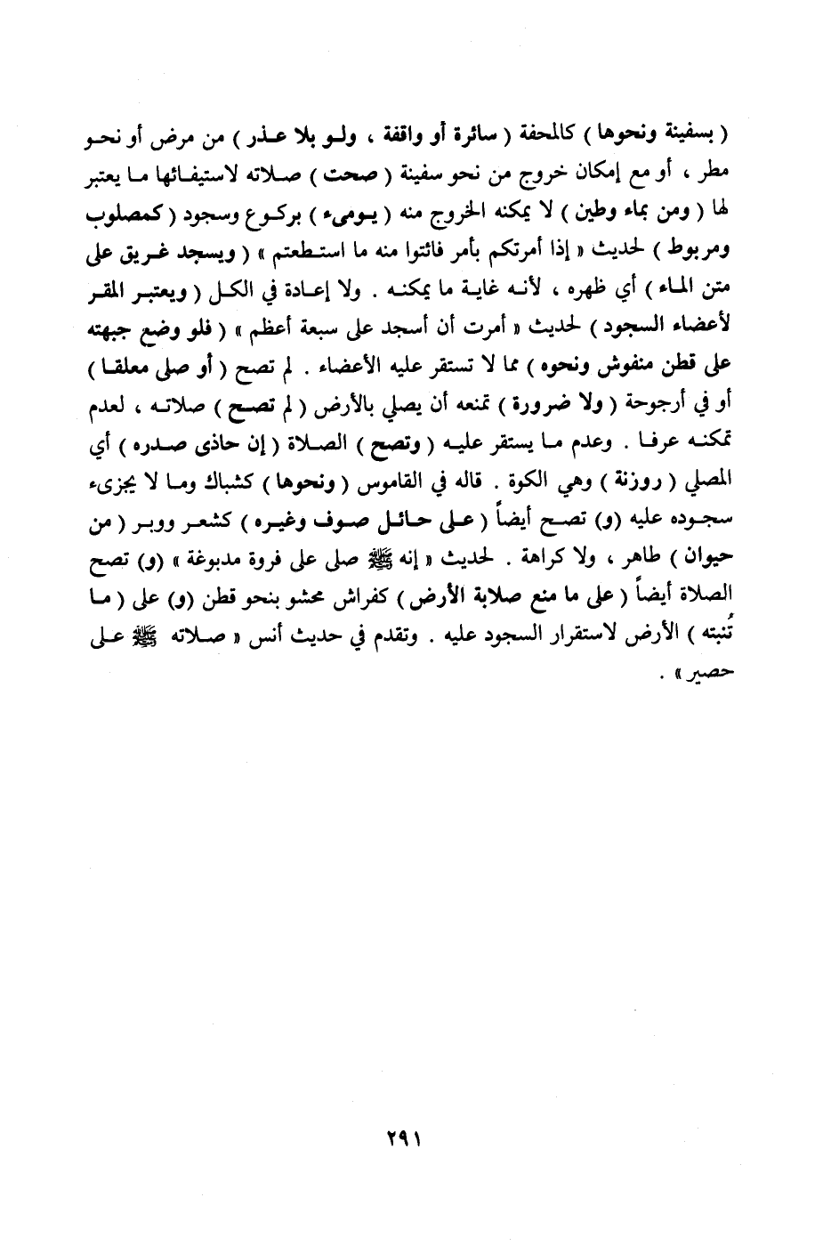 (بِسَفِينَةٍ وَنَحْوِهَا) كَالْمِحَفَّةِ (سَائِرَةً، أَوْ وَاقِفَةً، وَلَوْ بِلَا عُذْرٍ) مِنْ مَرَضٍ، أَوْ نَحْوِ مَطَرٍ، أَوْ مَعَ إمْكَانِ خُرُوجٍ مِنْ نَحْوِ سَفِينَةٍ (صَحَّتْ) صَلَاتُهُ لِاسْتِيفَائِهَا مَا يُعْتَبَرُ لَهَا.