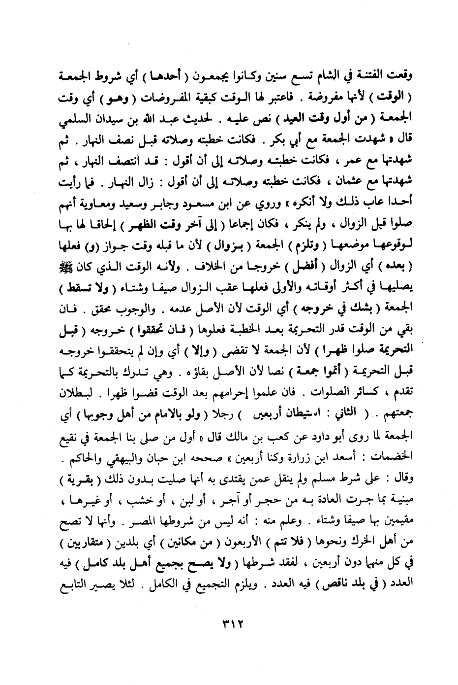وَقَعَتْ الْفِتْنَةُ فِي الشَّامِ تِسْعَ سِنِينَ وَكَانُوا يُجْمِعُونَ (أَحَدُهَا) أَيْ شُرُوطِ الْجُمُعَةِ (الْوَقْتُ) لِأَنَّهَا مَفْرُوضَةٌ.