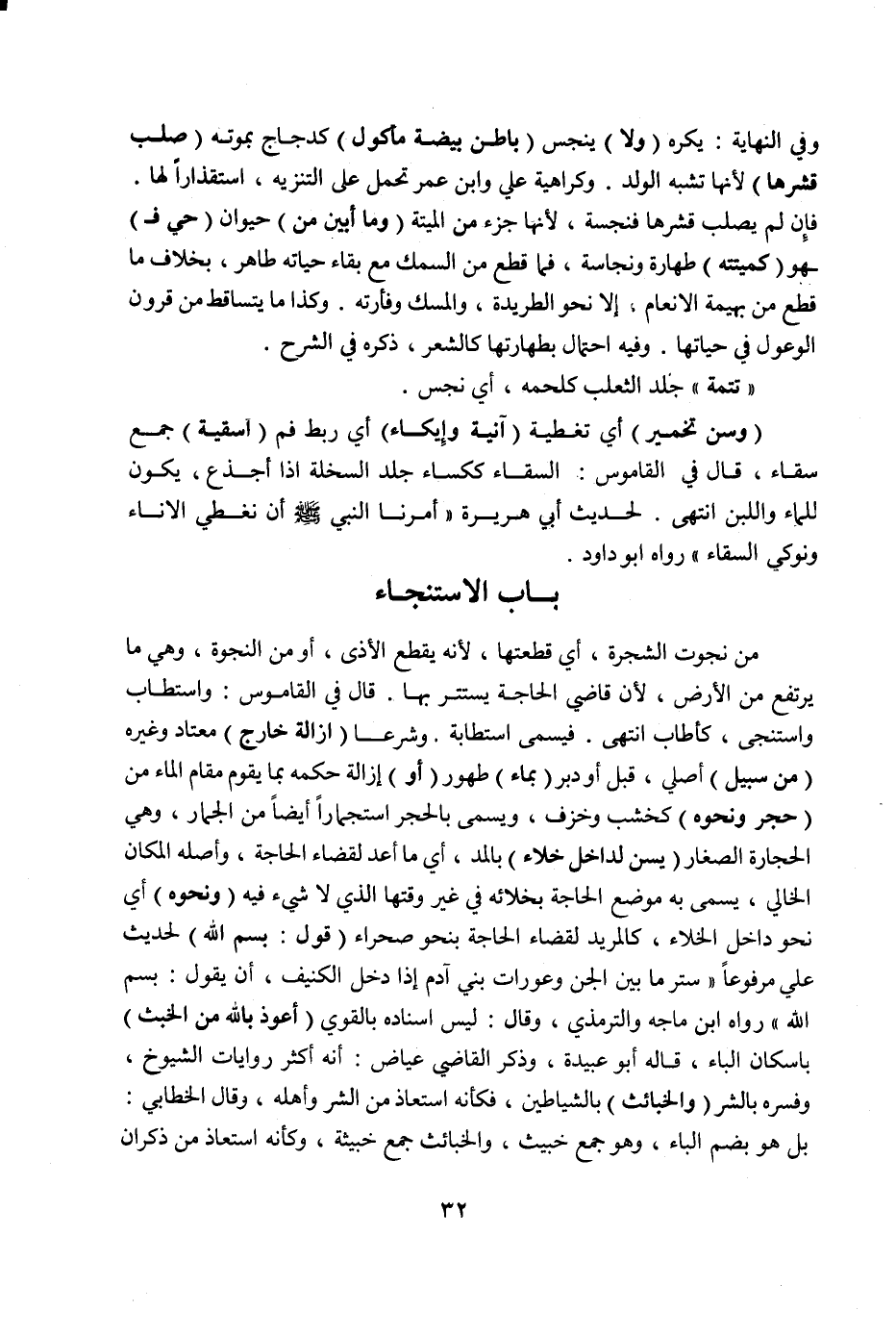 ِ مِنْ نَجَوْتُ الشَّجَرَةَ، أَيْ قَطَعْتهَا، لِأَنَّهُ يَقْطَعُ الْأَذَى، أَوْ مِنْ النَّجْوَةِ، وَهِيَ مَا يَرْتَفِعُ مِنْ الْأَرْضِ، لِأَنَّ قَاضِيَ الْحَاجَةِ يَسْتَتِرُ بِهَا. قَالَ فِي الْقَامُوسِ: وَاسْتَطَابَ وَاسْتَنْجَى، كَأَطَابَ انْتَهَى. فَيُسَمَّى اسْتِطَابَةً. وَشَرْعًا (إزَالَةُ خَارِجٍ) مُعْتَادٍ وَغَيْرِهِ (مِنْ سَبِيلٍ) أَصْلِيٍّ، قُبُلٍ أَوْ دُبُرٍ (بِمَاءٍ) طَهُورٍ (أَوْ) إزَالَةُ حُكْمِهِ بِمَا يَقُومُ مَقَامَ الْمَاءِ مِنْ (حَجَرٍ وَنَحْوه) كَخَشَبٍ وَخَزَفٍ، وَيُسَمَّى بِالْحَجَرِ اسْتِجْمَارًا أَيْضًا مِنْ الْجِمَارِ، وَهِيَ الْحِجَارَةُ الصِّغَارُ.
