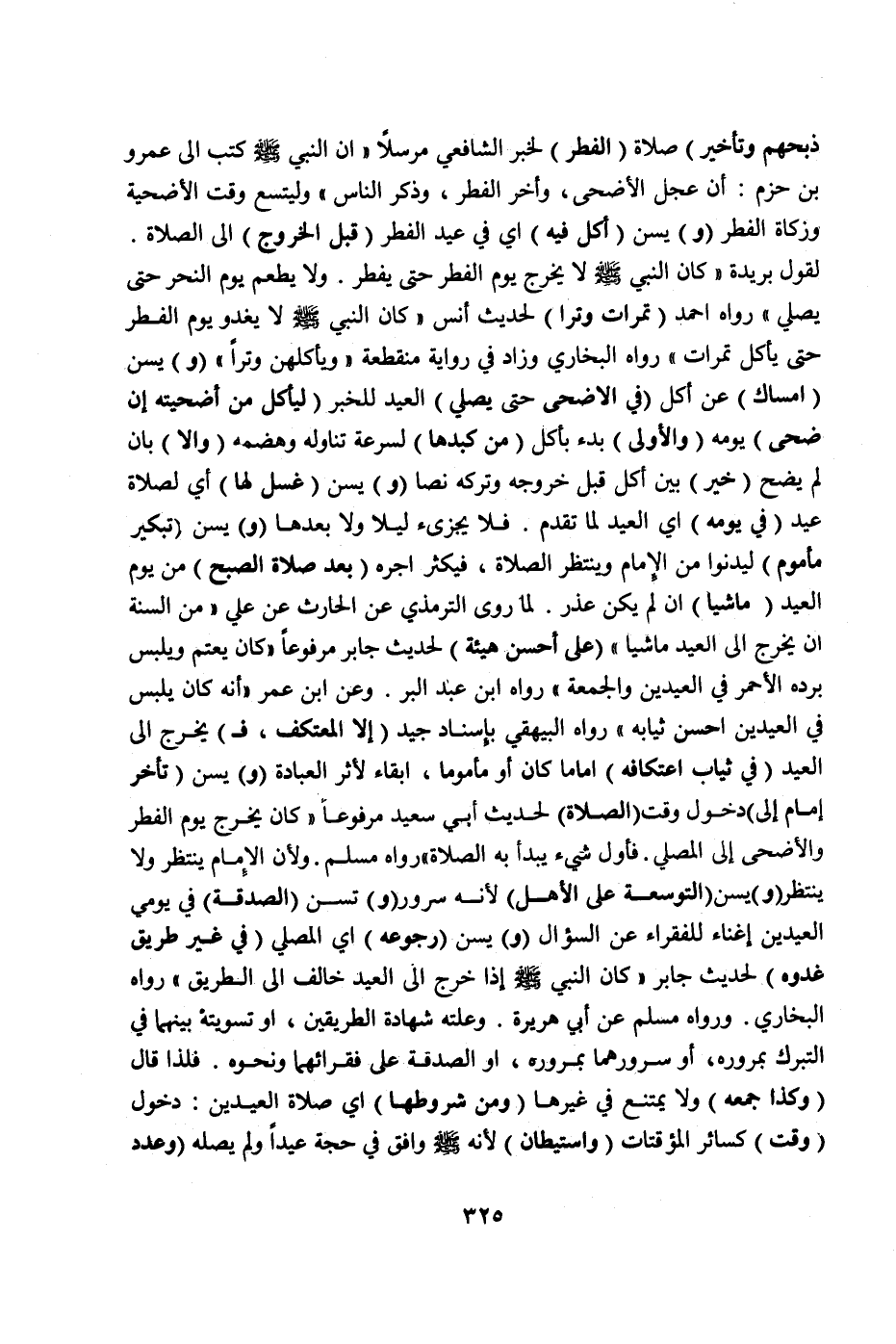 ذَبْحِهِمْ، وَتَأْخِيرُ) صَلَاةِ (الْفِطْرِ) لِخَبَرِ الشَّافِعِيِّ مُرْسَلًا «أَنَّ النَّبِيَّ صَلَّى اللَّهُ عَلَيْهِ وَسَلَّمَ كَتَبَ إلَى عَمْرِو بْنِ حَزْمٍ: أَنْ عَجِّلْ الْأَضْحَى وَأَخِّرْ الْفِطْرَ وَذَكِّرْ النَّاسَ» وَلِيَتَّسِعَ وَقْتُ الْأُضْحِيَّةِ وَزَكَاةِ الْفِطْرِ.