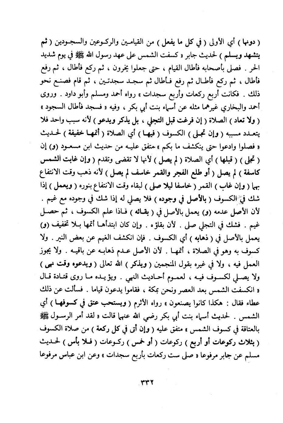 فَإِنْ انْكَشَفَ الْغَيْمُ عَنْ بَعْضِ النَّيْرِ وَلَا كُسُوفَ بِهِ وَهُوَ فِي الصَّلَاةِ، أَتَمَّهَا لِأَنَّ الْأَصْلَ عَدَمُ ذَهَابِهِ عَنْ بَاقِيهِ وَلَا يَجُوزُ الْعَمَلُ فِيهِ، وَلَا فِي غَيْرِهِ بِقَوْلِ الْمُنَجِّمِينَ (وَيَذْكُرُ) اللَّهَ تَعَالَى (وَيَدْعُوهُ وَقْتَ نَهْيٍ) وَلَا يُصَلِّي لِكُسُوفٍ فِيهِ، لِعُمُومِ أَحَادِيثِ النَّهْيِ وَيُؤَيِّدُهُ مَا رَوَى قَتَادَةُ قَالَ " انْكَسَفَتْ الشَّمْسُ بَعْدَ الْعَصْرِ وَنَحْنُ بِمَكَّةَ، فَقَامُوا يَدْعُونَ قِيَامًا فَسَأَلْت عَنْ ذَلِكَ عَطَاءً فَقَالَ: هَكَذَا كَانُوا يَصْنَعُونَ " رَوَاهُ الْأَثْرَمُ.