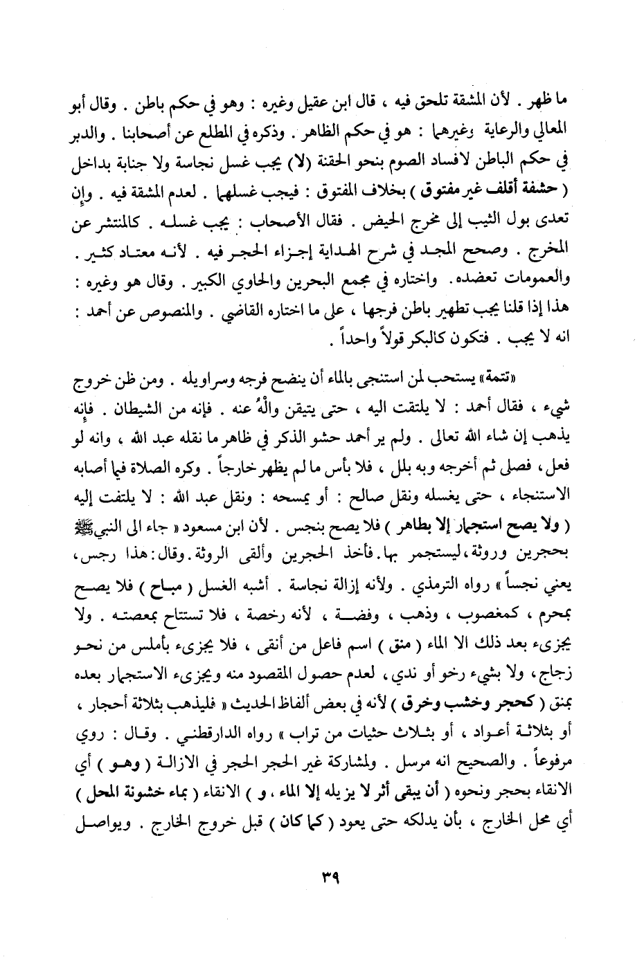 وَصَحَّحَ الْمَجْدُ فِي شَرْحِ الْهِدَايَةِ إجْزَاءَ الْحَجَرِ فِيهِ ; لِأَنَّهُ مُعْتَادٌ كَثِيرٌ. وَالْعُمُومَاتُ تَعْضُدُهُ. وَاخْتَارَهُ فِي مَجْمَعِ الْبَحْرَيْنِ وَالْحَاوِي الْكَبِيرِ. وَقَالَ هُوَ وَغَيْرُهُ: هَذَا إذَا قُلْنَا يَجِبُ تَطْهِيرُ بَاطِنِ فَرْجِهَا، عَلَى مَا اخْتَارَهُ الْقَاضِي. وَالْمَنْصُوصُ عَنْ أَحْمَدَ: أَنَّهُ لَا يَجِبُ. فَتَكُونُ كَالْبِكْرِ قَوْلًا وَاحِدًا.