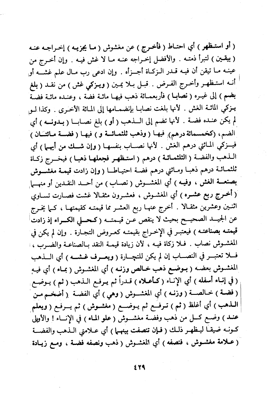 (وَإِنْ زَادَتْ قِيمَةُ مَغْشُوشٍ بِصَنْعَةِ الْغِشِّ، وَفِيهِ) أَيْ الْمَغْشُوشِ (نِصَابٌ) مِنْ أَحَدِ النَّقْدَيْنِ أَوْ مِنْهُمَا (أَخْرَجَ رُبْعَ عُشْرِهِ) أَيْ: الْمَغْشُوشِ، فَعِشْرُونَ مِثْقَالًا غُشَّتْ فَصَارَتْ تُسَاوِي اثْنَيْنِ وَعِشْرِينَ مِثْقَالًا أَخْرَجَ عَنْهَا رُبْعَ الْعُشْرِ مِمَّا قِيمَتُهُ كَقِيمَتِهَا، كَمَا يُخْرِجُ عَنْ الْجَيِّدِ الصَّحِيحِ بِحَيْثُ لَا يَنْقُصُ عَنْ قِيمَتِهِ (كَحُلِيِّ الْكِرَاءِ إذْ زَادَتْ قِيمَتُهُ بِصِنَاعَتِهِ) فَيُعْتَبَرُ فِي الْإِخْرَاجِ بِقِيمَتِهِ كَعُرُوضِ التِّجَارَةِ، إنْ لَمْ يَكُنْ فِي الْمَغْشُوشِ نِصَابٌ، فَلَا زَكَاةَ فِيهِ، لِأَنَّ زِيَادَةَ قِيمَةِ النَّقْدِ بِالصِّنَاعَةِ وَالضَّرْبِ، فَلَا تُعْتَبَرُ فِي النِّصَابِ إنْ لَمْ يَكُنْ لِلتِّجَارَةِ.