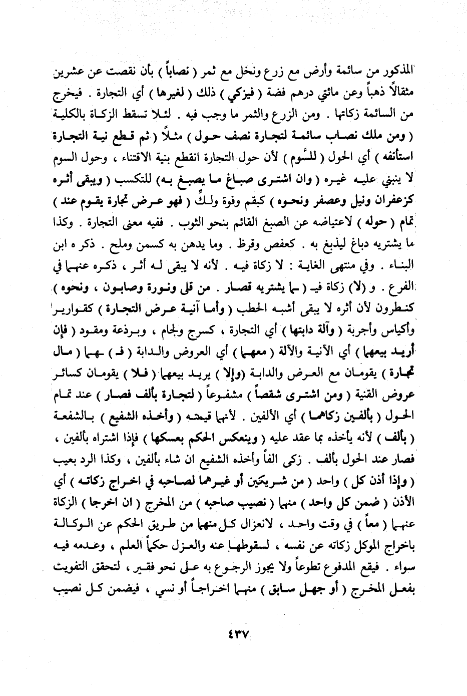 الْمَذْكُورِ مِنْ سَائِمَةٍ وَأَرْضٍ مَعَ زَرْعٍ وَنَخْلٍ مَعَ ثَمَرٍ (نِصَابًا) بِأَنْ نَقَصَتْ عَنْ عِشْرِينَ مِثْقَالًا ذَهَبًا وَعَنْ مِائَتَيْ دِرْهَمٍ فِضَّةً (فَيُزَكِّي) ذَلِكَ (لِغَيْرِهَا) أَيْ التِّجَارَةِ، فَيُخْرِجُ مِنْ السَّائِمَةِ زَكَاتَهَا، وَمِنْ الزَّرْعِ وَالثَّمَرِ مَا وَجَبَ فِيهِ لِئَلَّا تَسْقُطَ الزَّكَاةُ بِالْكُلِّيَّةِ.