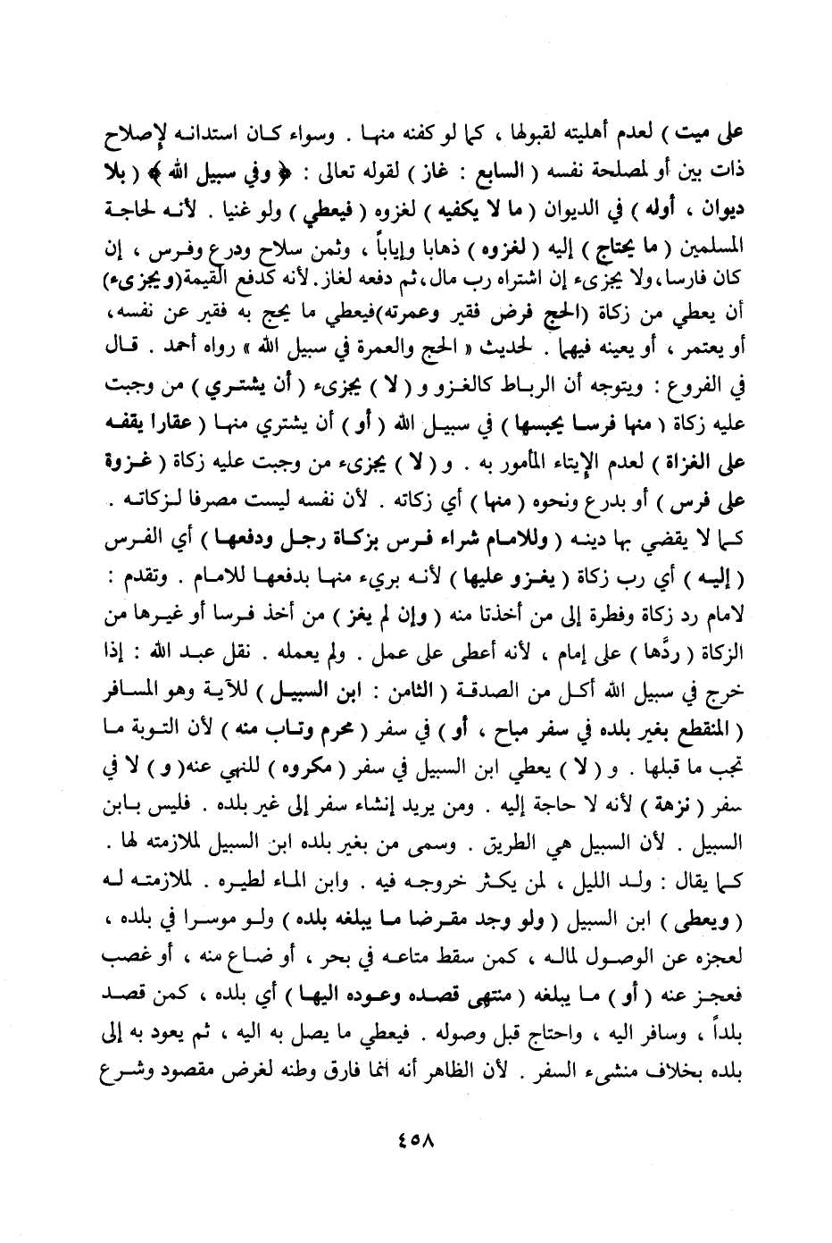 (الثَّامِنُ: ابْنُ السَّبِيلِ) لِلْآيَةِ وَهُوَ الْمُسَافِرُ (الْمُنْقَطِعُ بِغَيْرِ بَلَدِهِ فِي سَفَرٍ مُبَاحٍ، أَوْ) فِي سَفَرٍ (مُحَرَّمٍ وَتَابَ مِنْهُ) لِأَنَّ التَّوْبَةَ تَجُبُّ مَا قَبْلَهَا. وَ (لَا) يُعْطَى ابْنُ السَّبِيلِ فِي سَفَرٍ (مَكْرُوهٍ) لِلنَّهْيِ عَنْهُ.