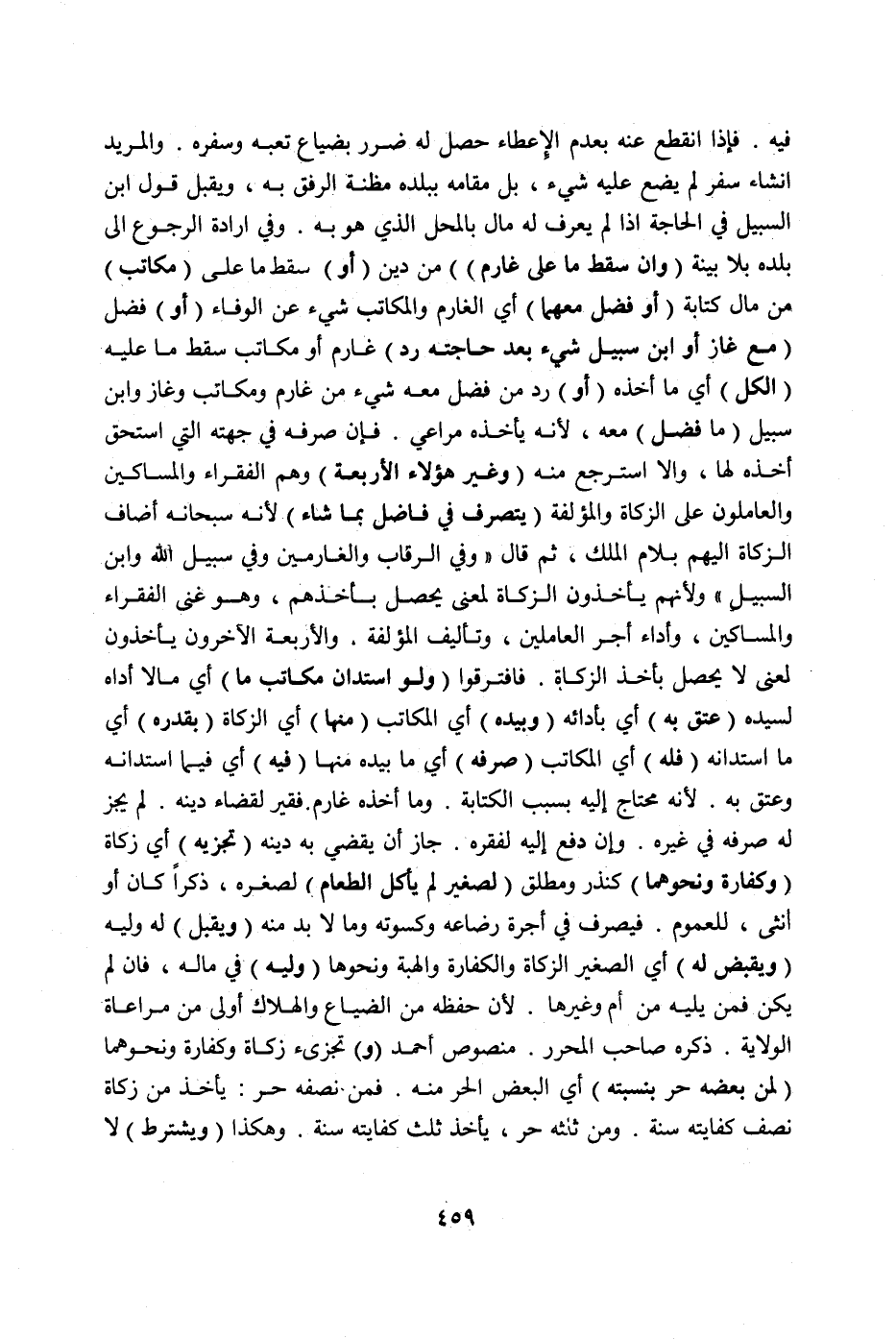 (وَإِنْ سَقَطَ مَا عَلَى غَارِمٍ) مِنْ دَيْنٍ (أَوْ) سَقَطَ مَا عَلَى (مُكَاتَبٍ) مِنْ مَالِ كِتَابَةٍ (أَوْ فَضَلَ مَعَهُمَا) أَيْ: الْغَارِمِ وَالْمُكَاتَبِ شَيْءٌ عَنْ الْوَفَاءِ (أَوْ) فَضَلَ (مَعَ غَازٍ أَوْ ابْنِ سَبِيلٍ شَيْءٌ بَعْدَ حَاجَتِهِ رَدَّ) غَارِمٌ أَوْ مُكَاتَبٌ سَقَطَ مَا عَلَيْهِ (الْكُلَّ) أَيْ: مَا أَخَذَهُ (أَوْ) رَدَّ مَنْ فَضَلَ مَعَهُ شَيْءٌ مِنْ غَارِمٍ وَمُكَاتَبٍ وَغَازٍ وَابْنِ سَبِيلٍ (مَا فَضَلَ) مَعَهُ، لِأَنَّهُ يَأْخُذُهُ مُرَاعِي، فَإِنْ صَرَفَهُ فِي جِهَتِهِ الَّتِي اسْتَحَقَّ أَخْذَهُ لَهَا، وَإِلَّا اسْتَرْجَعَ مِنْهُ (وَغَيْرُ هَؤُلَاءِ الْأَرْبَعَةِ) وَهُمْ الْفُقَرَاءُ وَالْمَسَاكِينُ وَالْعَامِلُونَ عَلَى الزَّكَاةِ وَالْمُؤَلَّفَةُ (يَتَصَرَّفُ فِي فَاضِلٍ بِمَا شَاءَ) لِأَنَّهُ سُبْحَانَهُ أَضَافَ الزَّكَاةَ إلَيْهِمْ فَاللَّامُ الْمِلْكِ، ثُمَّ قَالَ {وَفِي الرِّقَابِ وَالْغَارِمِينَ وَفِي سَبِيلِ اللَّهِ وَابْنِ السَّبِيلِ} [التوبة: ٦٠] وَلِأَنَّهُمْ يَأْخُذُونَ الزَّكَاةَ لِمَعْنًى يَحْصُلُ بِأَخْذِهِمْ، وَهُوَ غِنَى الْفُقَرَاءِ وَالْمَسَاكِينِ، وَأَدَاءِ أَجْرِ الْعَامِلِينَ، وَتَأْلِيفِ الْمُؤَلَّفَةِ، وَالْأَرْبَعَةُ الْآخَرُونَ يَأْخُذُونَ لِغِنًى لَا يَحْصُلُ بِأَخْذِ الزَّكَاةِ، فَافْتَرَقُوا.
