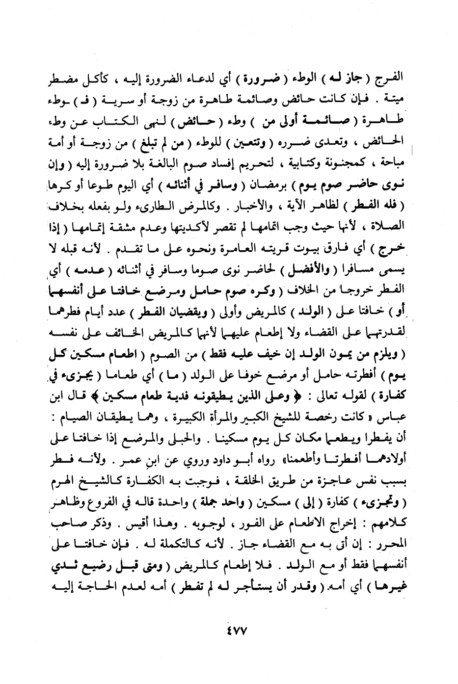 (وَكُرِهَ صَوْمُ حَامِلٍ وَمُرْضِعٍ خَافَتَا عَلَى أَنْفُسِهِمَا أَوْ) خَافَتَا عَلَى (الْوَلَدِ) كَالْمَرِيضِ وَأَوْلَى (وَيَقْضِيَانِ الْفِطْرَ) عَدَدَ أَيَّامِ فِطْرِهِمَا لِقُدْرَتِهِمَا عَلَى الْقَضَاءِ وَلَا إطْعَامَ عَلَيْهِمَا لِأَنَّهُمَا كَالْمَرِيضِ الْخَائِفِ عَلَى نَفْسِهِ (وَيَلْزَمُ مَنْ يَمُونُ الْوَلَدَ إنْ خِيفَ عَلَيْهِ فَقَطْ) مِنْ الصَّوْمِ (إطْعَامُ مِسْكِينٍ كُلَّ يَوْمٍ) أَفْطَرَتْهُ حَامِلٌ أَوْ مُرْضِعٌ خَوْفًا عَلَى الْوَلَدِ (مَا) أَيْ طَعَامًا (يُجْزِئُ فِي كَفَّارَةٍ) لِقَوْلِهِ تَعَالَى: {وَعَلَى الَّذِينَ يُطِيقُونَهُ فِدْيَةٌ طَعَامُ مِسْكِينٍ} [البقرة: ١٨٤] قَالَ ابْنُ عَبَّاسٍ " كَانَتْ رُخْصَةً لِلشَّيْخِ الْكَبِيرِ وَالْمَرْأَةِ الْكَبِيرَةِ، وَهُمَا يُطِيقَانِ الصِّيَامَ: أَنْ يُفْطِرَا وَيُطْعِمَا مَكَانَ كُلِّ يَوْمٍ مِسْكِينًا وَالْحُبْلَى وَالْمُرْضِعُ إذَا خَافَتَا عَلَى أَوْلَادِهِمَا أَفْطَرَتَا وَأَطْعَمَتَا ".