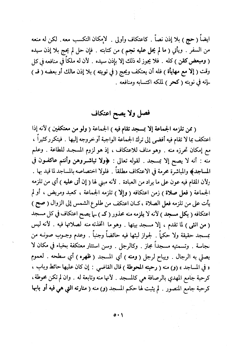 ُ (وَلَوْ مِنْ مُعْتَكِفِينَ) لِأَنَّهُ إذَا اعْتَكَفَ بِمَا لَا تُقَامُ فِيهِ أَفْضَى إلَى تَرْكِ الْجَمَاعَةِ الْوَاجِبَةِ أَوْ خُرُوجِهِ إلَيْهَا فَيَتَكَرَّرُ كَثِيرًا، مَعَ إمْكَان تَحَرُّزِهِ مِنْهُ وَهُوَ مُنَافٍ لِلِاعْتِكَافِ، إذْ هُوَ لُزُومُ الْمَسْجِدِ لِلطَّاعَةِ وَعُلِمَ مِنْهُ: أَنَّهُ لَا يَصِحُّ إلَّا بِمَسْجِدٍ لِقَوْلِهِ تَعَالَى: {وَلَا تُبَاشِرُوهُنَّ وَأَنْتُمْ عَاكِفُونَ فِي الْمَسَاجِدِ} [البقرة: ١٨٧] وَالْمُبَاشَرَةُ مُحَرَّمَةٌ فِي الِاعْتِكَافِ مُطْلَقًا فَلَوْلَا اخْتِصَاصُهُ بِالْمَسَاجِدِ لَمَا قُيِّدَ بِهَا وَلِأَنَّ الْمَقَامَ فِيهِ عَوْنٌ عَلَى مَا يُرَادُ مِنْ الْعِبَادَةِ لِأَنَّهُ مَبْنِيٌّ لَهَا (إنْ أَتَى عَلَيْهِ) أَيْ مَنْ تَلْزَمُهُ الْجَمَاعَةُ (فِعْلُ صَلَاةٍ) زَمَنَ اعْتِكَافِهِ (وَإِلَّا) تَلْزَمُهُ الْجَمَاعَةُ، كَعَبْدٍ وَمَرِيضٍ، أَوْ لَمْ يَأْتِ عَلَى مَنْ تَلْزَمُهُ فِعْلُ الصَّلَاةِ، كَأَنْ اعْتَكَفَ مِنْ طُلُوعِ الشَّمْسِ إلَى الزَّوَالِ (صَحَّ) اعْتِكَافُهُ (بِكُلِّ مَسْجِدٍ) لِأَنَّهُ لَا يَلْزَمُهُ مِنْهُ مَحْذُورٌ