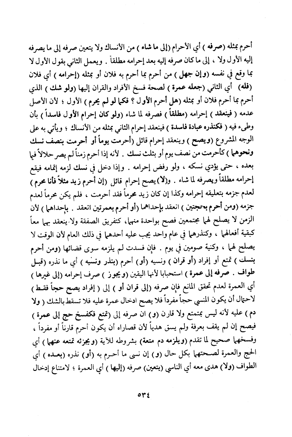أَحْرَمَ بِمِثْلِهِ (صَرْفُهُ) أَيْ الْإِحْرَامَ (إلَى مَا شَاءَ) مِنْ الْأَنْسَاكِ وَلَا يَتَعَيَّنُ صَرْفُهُ إلَى مَا يَصْرِفُهُ إلَيْهِ الْأَوَّلُ وَلَا، إلَى مَا كَانَ صَرْفُهُ إلَيْهِ بَعْدَ إحْرَامِهِ مُطْلَقًا وَيَعْمَلُ الثَّانِي بِقَوْلِ الْأَوَّلِ لَا بِمَا وَقَعَ فِي نَفْسِهِ (وَإِنْ جَهِلَ) مَنْ أَحْرَمَ بِمَا أَحْرَمَ بِهِ فُلَانٌ أَوْ بِمِثْلِهِ (إحْرَامَهُ) أَيْ فُلَانٍ (فَلَهُ) أَيْ الثَّانِي (جَعْلُهُ عُمْرَةً) لِصِحَّةِ فَسْخِ الْإِفْرَادِ وَالْقِرَانِ إلَيْهَا