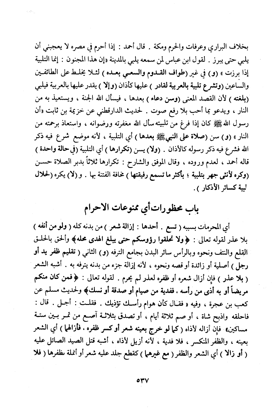 [بَابُ مَحْظُورَاتِ أَيْ مَمْنُوعَات الْإِحْرَامِ]