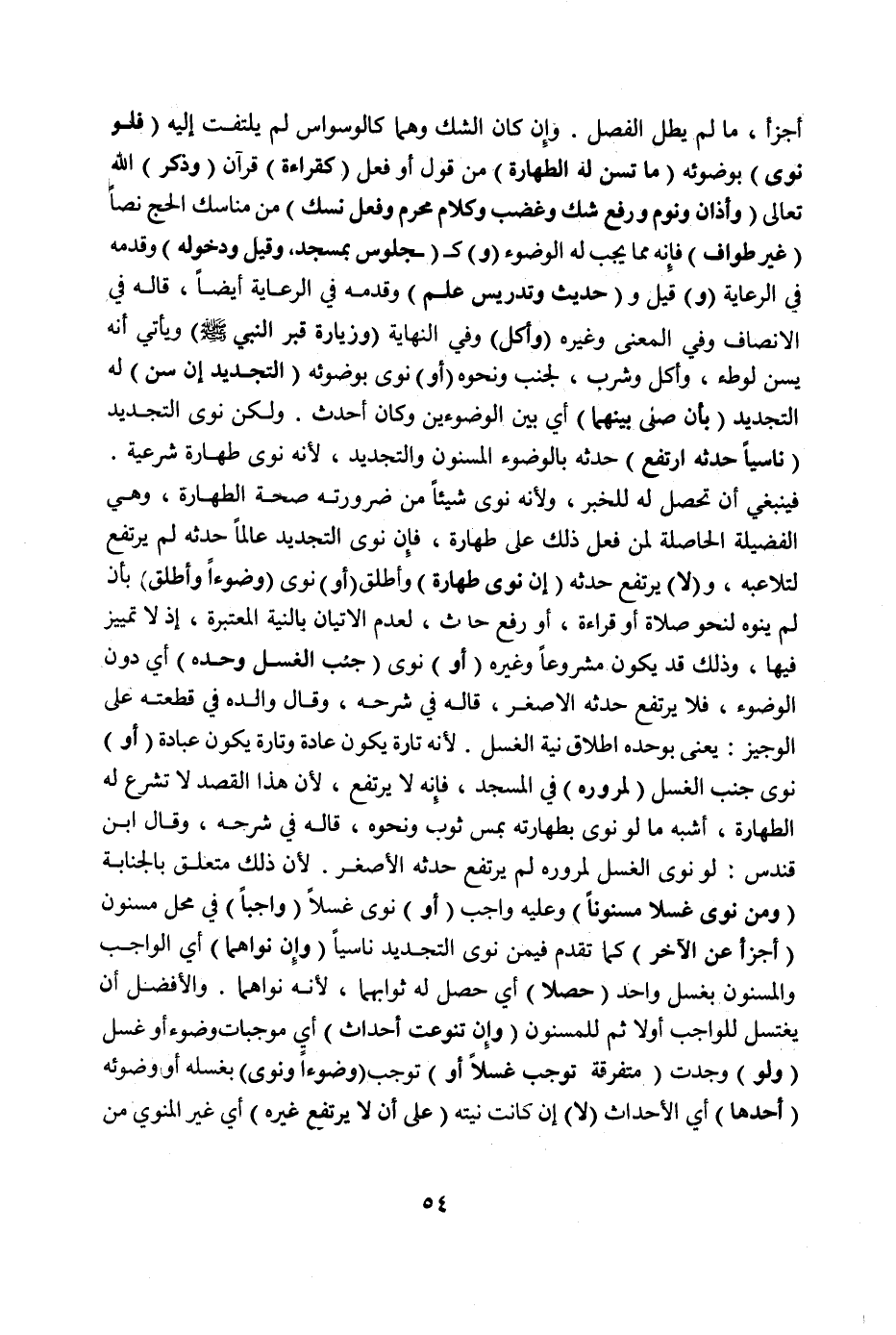 فَإِنْ نَوَى التَّجْدِيدَ عَالِمًا حَدَثَهُ لَمْ يَرْتَفِعْ لِتَلَاعُبِهِ، و (لَا) يَرْتَفِعُ حَدَثُهُ (إنْ نَوَى طَهَارَةً) وَأَطْلَقَ (أَوْ) نَوَى (وُضُوءًا وَأَطْلَقَ) بِأَنْ لَمْ يَنْوِهِ لِنَحْوِ صَلَاةٍ أَوْ قِرَاءَةٍ، أَوْ رَفْعِ حَدَثٍ، لِعَدَمِ الْإِتْيَانِ بِالنِّيَّةِ الْمُعْتَبَرَةِ، إذْ لَا تَمْيِيزَ فِيهَا، وَذَلِكَ قَدْ يَكُونُ مَشْرُوعًا وَغَيْرُهُ.