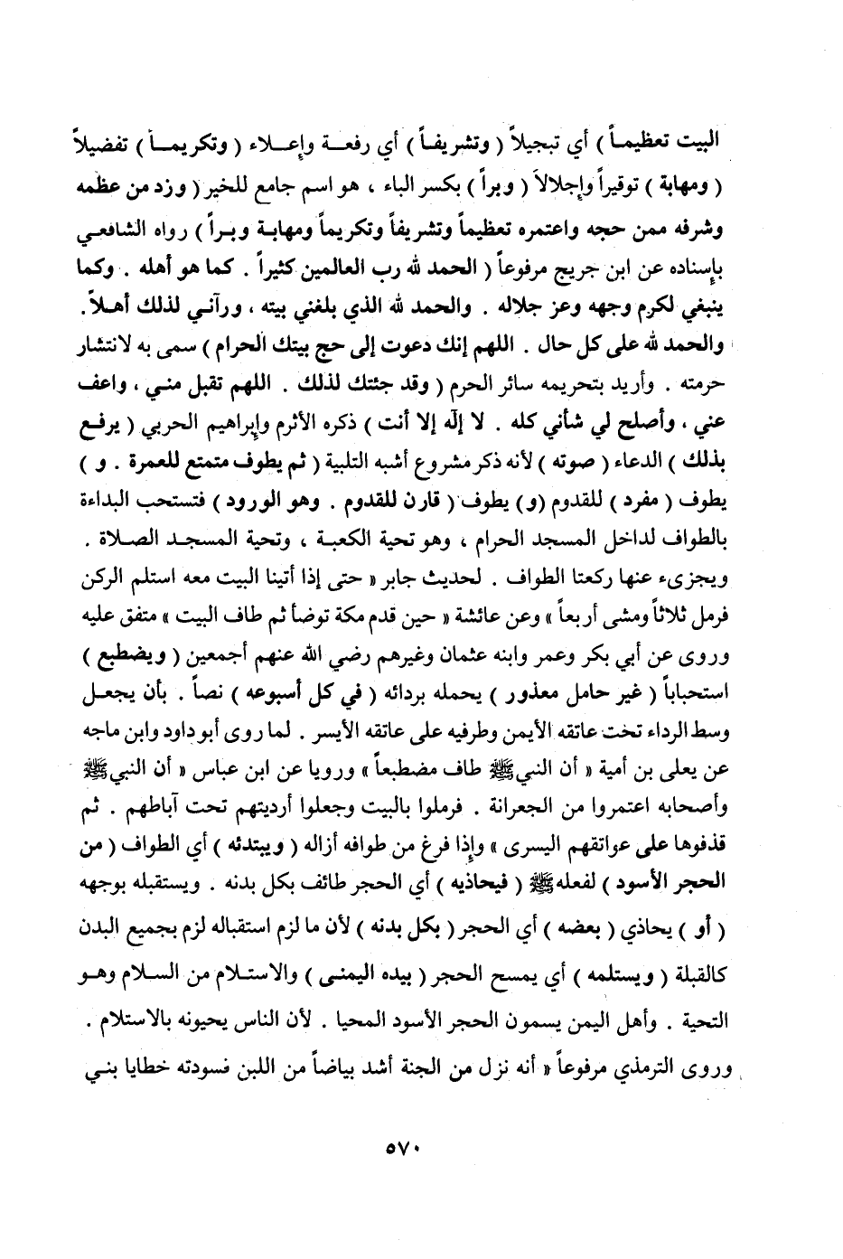 (اللَّهُمَّ زِدْ هَذَا الْبَيْتَ تَعْظِيمًا) أَيْ تَبْجِيلًا (وَتَشْرِيفًا) أَيْ رِفْعَةً وَإِعْلَاءً (وَتَكْرِيمًا) تَفْضِيلًا (وَمَهَابَةً) تَوْقِيرًا وَإِجْلَالًا (وَبِرًّا) بِكَسْرِ الْبَاءِ، هُوَ اسْمٌ جَامِعٌ لِلْخَيْرِ (وَزِدْ مَنْ عَظَّمَهُ وَشَرَّفَهُ مِمَّنْ حَجَّهُ وَاعْتَمَرَهُ تَعْظِيمًا وَتَشْرِيفًا وَتَكْرِيمًا وَمَهَابَةً وَبِرًّا) رَوَاهُ الشَّافِعِيُّ بِإِسْنَادِهِ عَنْ ابْنِ جُرَيْجٍ مَرْفُوعًا (الْحَمْدُ لِلَّهِ رَبِّ الْعَالَمِينَ كَثِيرًا كَمَا هُوَ أَهْلُهُ وَكَمَا يَنْبَغِي لِكَرَمِ وَجْهِهِ وَعِزِّ جَلَالِهِ وَالْحَمْدُ لِلَّهِ الَّذِي بَلَّغَنِي بَيْتَهُ، وَرَآنِي لِذَلِكَ أَهْلًا وَالْحَمْدُ لِلَّهِ عَلَى كُلِّ حَالٍ اللَّهُمَّ إنَّك دَعَوْتَ إلَى حَجِّ بَيْتِك الْحَرَامِ) سُمِّيَ بِهِ لِانْتِشَارِ حُرْمَتِهِ وَأُرِيدَ بِتَحْرِيمِهِ سَائِرُ الْحُرُمِ (وَقَدْ جِئْتُكَ لِذَلِكَ اللَّهُمَّ تَقَبَّلْ مِنِّي وَاعْفُ عَنِّي وَأَصْلِحْ لِي شَأْنِي كُلَّهُ لَا إلَهَ إلَّا أَنْتَ) ذَكَرَهُ الْأَثْرَمُ وَإِبْرَاهِيمُ الْحَرْبِيُّ (يَرْفَعُ بِذَلِكَ) الدُّعَاءِ (صَوْتَهُ) لِأَنَّهُ ذِكْرٌ مَشْرُوعٌ أَشْبَهَ التَّلْبِيَةَ