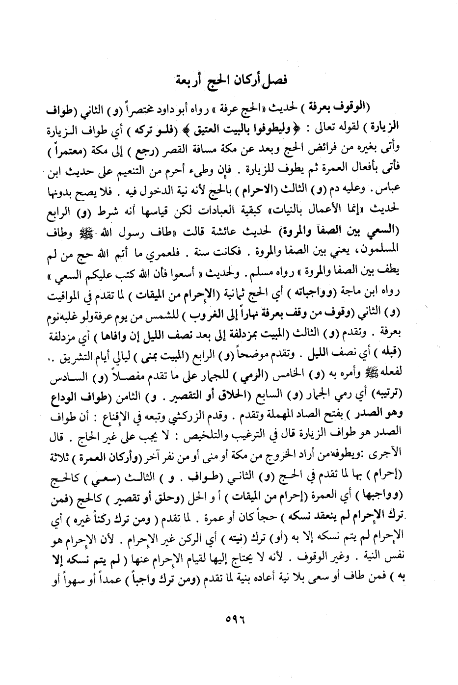 ِّ أَرْبَعَةٌ (الْوُقُوفُ بِعَرَفَةَ) لِحَدِيثِ «الْحَجُّ عَرَفَةَ» رَوَاهُ أَبُو دَاوُد مُخْتَصَرًا.