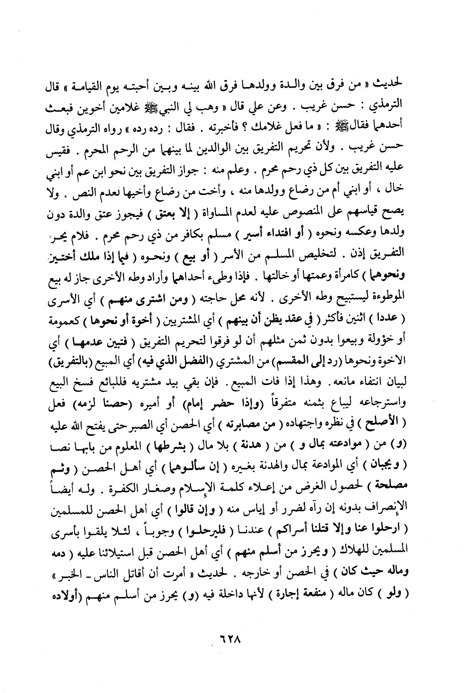 لِحَدِيثِ «مَنْ فَرَّقَ بَيْنَ وَالِدَةٍ وَوَلَدِهَا فَرَّقَ اللَّهُ بَيْنَهُ وَبَيْنَ أَحِبَّتِهِ يَوْمَ الْقِيَامَةِ» .