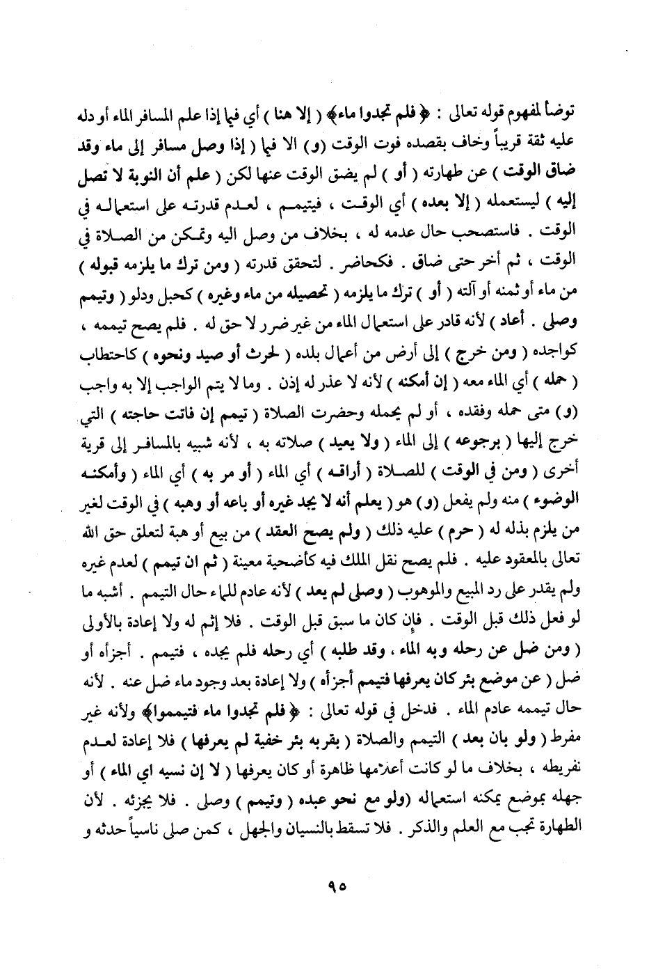 تَوَضَّأَ لِمَفْهُومِ قَوْله تَعَالَى: {فَلَمْ تَجِدُوا مَاءً} [المائدة: ٦] (إلَّا هُنَا) أَيْ فِيمَا إذَا عَلِمَ الْمُسَافِرُ الْمَاءَ أَوْ دَلَّهُ عَلَيْهِ ثِقَةٌ قَرِيبًا وَخَافَ بِقَصْدِهِ فَوْتَ الْوَقْتِ.