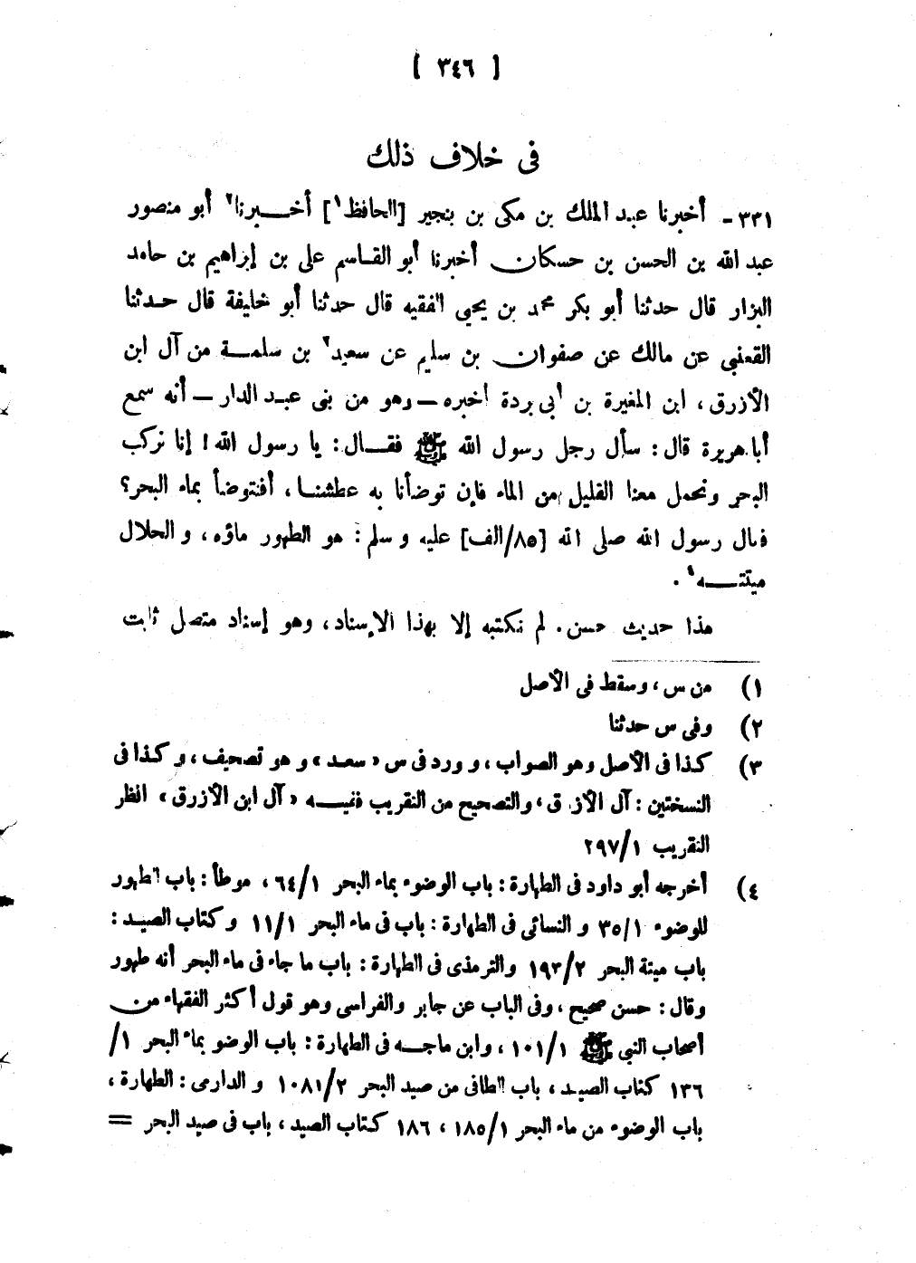 186 - أَخْبَرَنَا حَمَدُ بْنُ نَصْرِ بْنِ أَحْمَدَ الْحَافِظُ، أَخْبَرَنَا عَبْدُ الرَّحْمَنِ بْنُ غَزْوِ بْنِ مُحَمَّدٍ النَّهَاوَنْدِيُّ، قَالَ: حَدَّثَنَا أَحْمَدُ بْنُ إِبْرَاهِيمَ بْنِ تَرْكَانَ، قَالَ: حَدَّثَنَا مُحَمَّدُ بْنُ الْحُسَيْنِ بْنِ عَلِيٍّ، قَالَ: حَدَّثَنَا مُحَمَّدُ بْنُ جَعْفَرِ بْنِ عَلِيٍّ، قَالَ حَدَّثَنَا الْمَأْمُونُ بْنُ أَحْمَدَ السُّلَمِيُّ، أَخْبَرَنَا أَحْمَدُ بْنُ عَبْدِ اللَّهِ الْجُوَيْبَارِيُّ الْهَرَوِيُّ، قَالَ: حَدَّثَنَا أَبُو الْبَخْتَرِيِّ وَهْبُ بْنُ وَهْبٍ الْقَاضِي الْقُرَشِيُّ، عَنْ مُحَمَّدِ بْنِ إِسْحَاقَ، قَالَ: إِنَّ عَلِيَّ بْنَ أَبِي طَالِبٍ لَمَّا سَمِعَ بِمَا فَعَلَ أَبُو مُوسَى الْأَشْعَرِيُّ، وَعَمْرُو بْنُ الْعَاصِ فِي أَمْرِ الْحَكَمَيْنِ خَطَبَ النَّاسَ، فَحَمِدَ اللَّهَ تَعَالَى، وَأَثْنَى عَلَيْهِ، ثُمَّ قَالَ: «أَيُّهَا النَّاسُ، إِنَّ هَذَيْنِ قَدْ تَعَدَّيَا مَا أُمِرَا بِهِ، وَلَمْ يَحْكُمَا بِمَا أَنْزَلَ اللَّهُ تَعَالَى، وَقَدْ بَرِئَ اللَّهُ وَرَسُولُهُ مِنْهُمَا، وَلَيْسَ عَلَى الْمُسْلِمِينَ مِنْهُمَا حُكْمٌ، فَانْفِرُوا إِلَى عَدُوِّكُمْ، فَقَاتِلُوهُمْ، حَتَّى يَحْكُمَ اللَّهُ بَيْنَكُمْ وَبَيْنَهُمْ» .