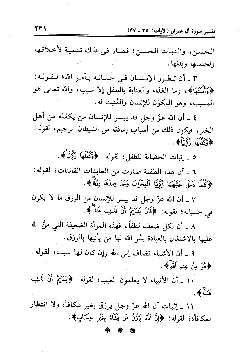 ١١ - إثبات أن الله عزّ وجل يرزق بغير مكافأة ولا انتظار لمكافأة؛ لقوله: {إِنَّ اللَّهَ يَرْزُقُ مَنْ يَشَاءُ بِغَيْرِ حِسَابٍ}.
