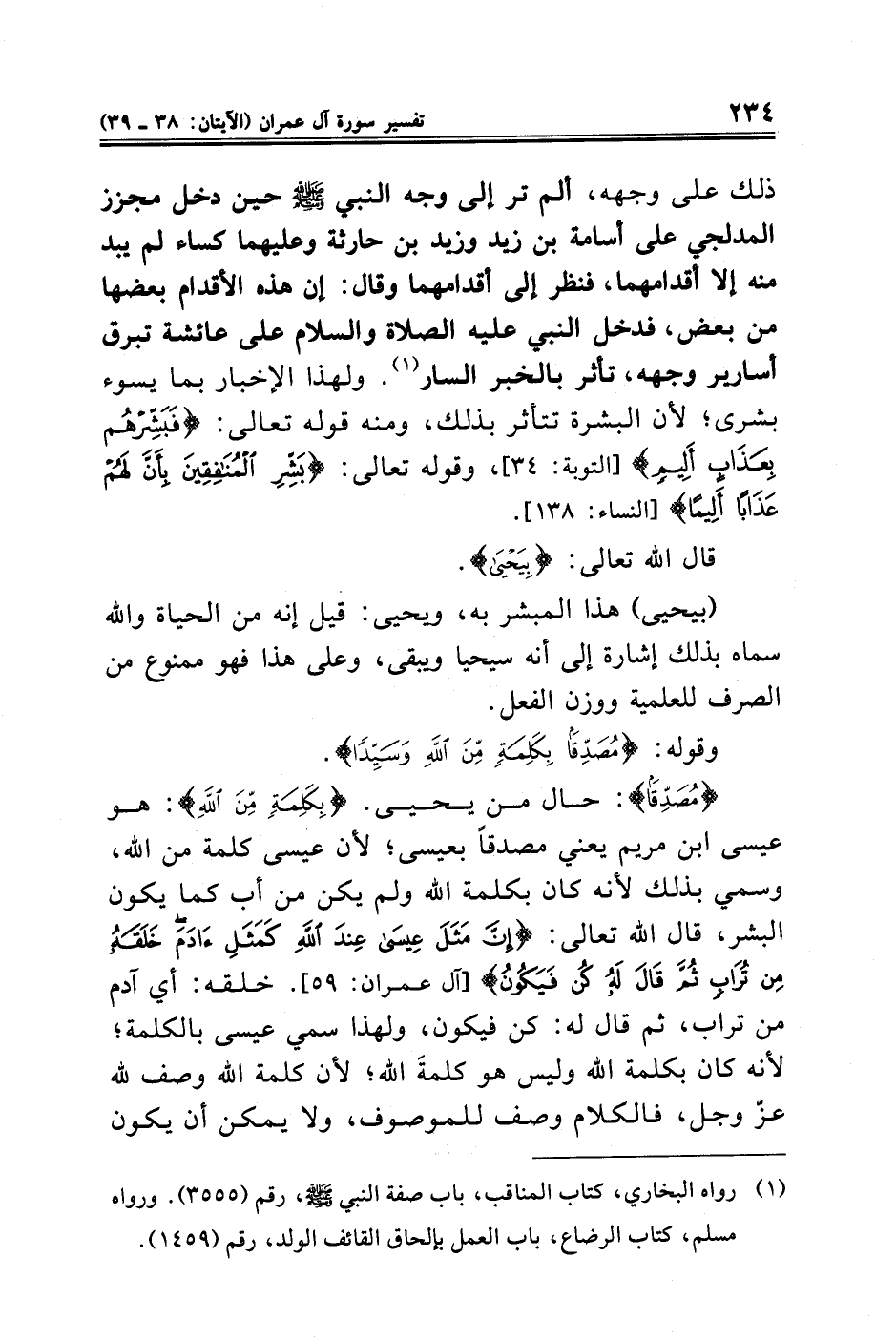 (¬١) رواه البخاري، كتاب المناقب، باب صفة النبي - صلى الله عليه وسلم -، رقم (٣٥٥٥). ورواه مسلم، كتاب الرضاع، باب العمل بإلحاق القائف الولد، رقم (١٤٥٩).
