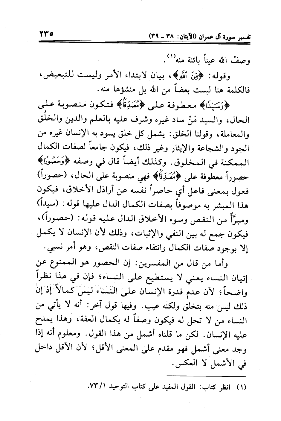 (¬١) انظر كتاب: القول المفيد على كتاب التوحيد ١/ ٧٣.